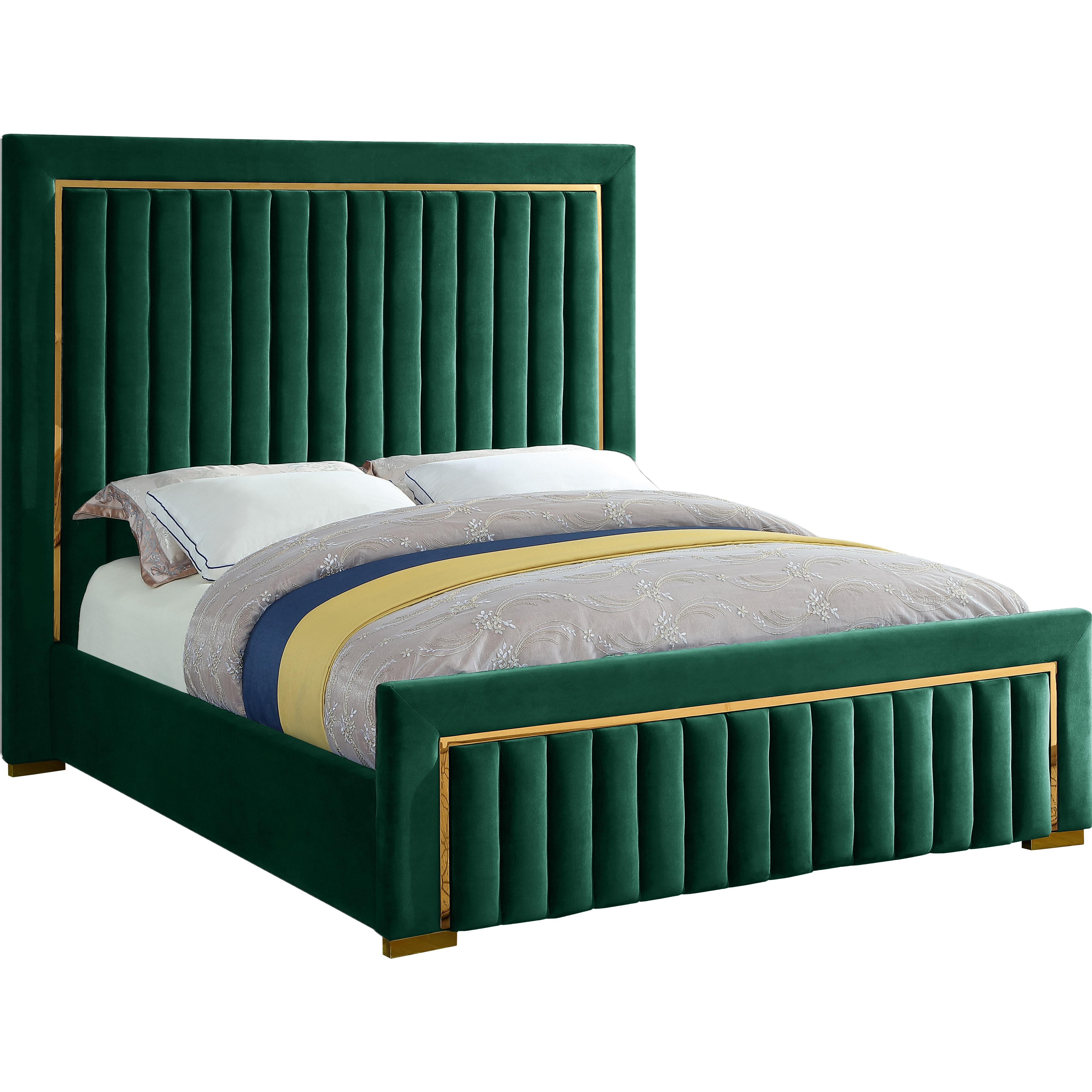 Meridian Dolce Green Velvet Queen Bed (3 Boxes)