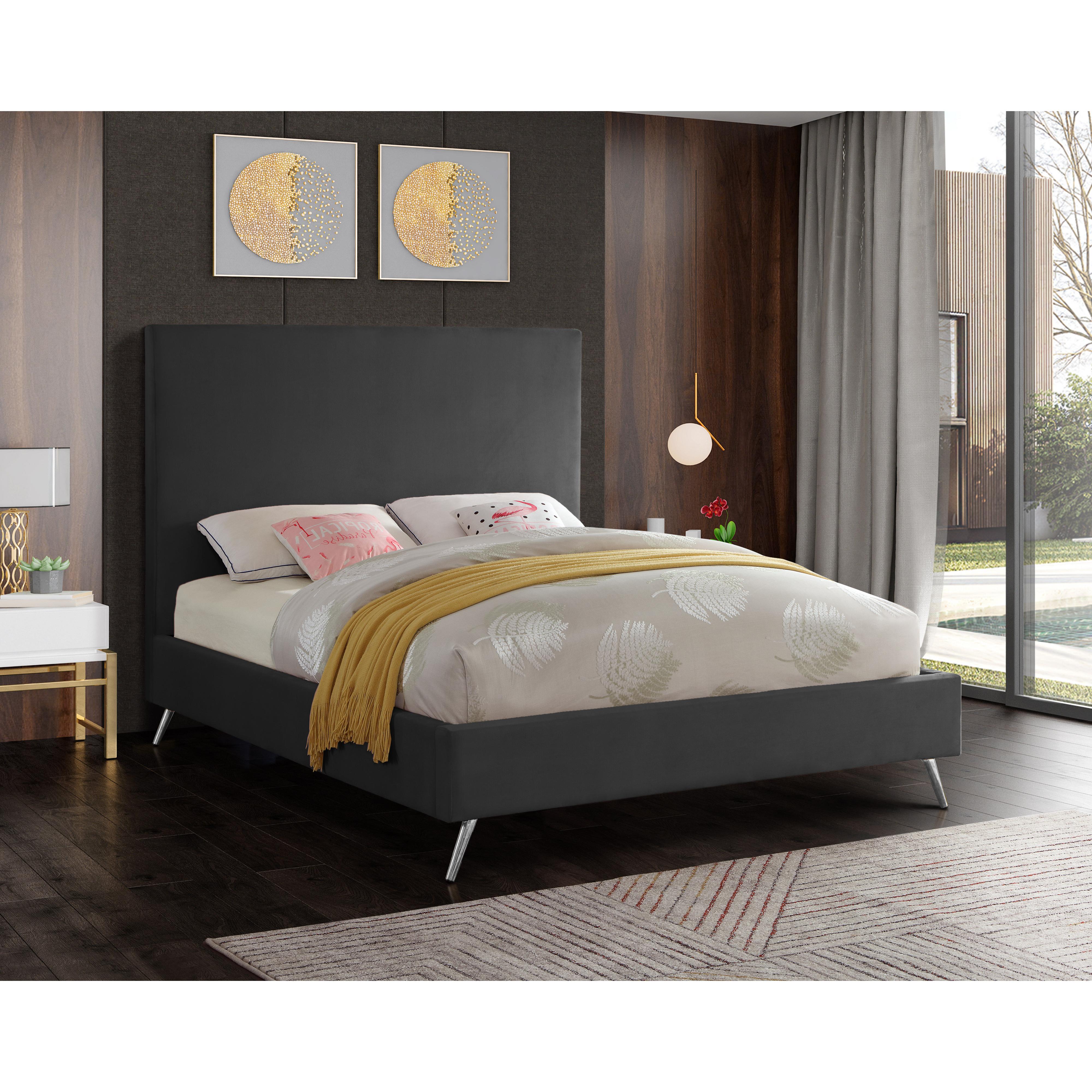 Meridian Rowan Grey Velvet Queen Bed (3 Boxes)