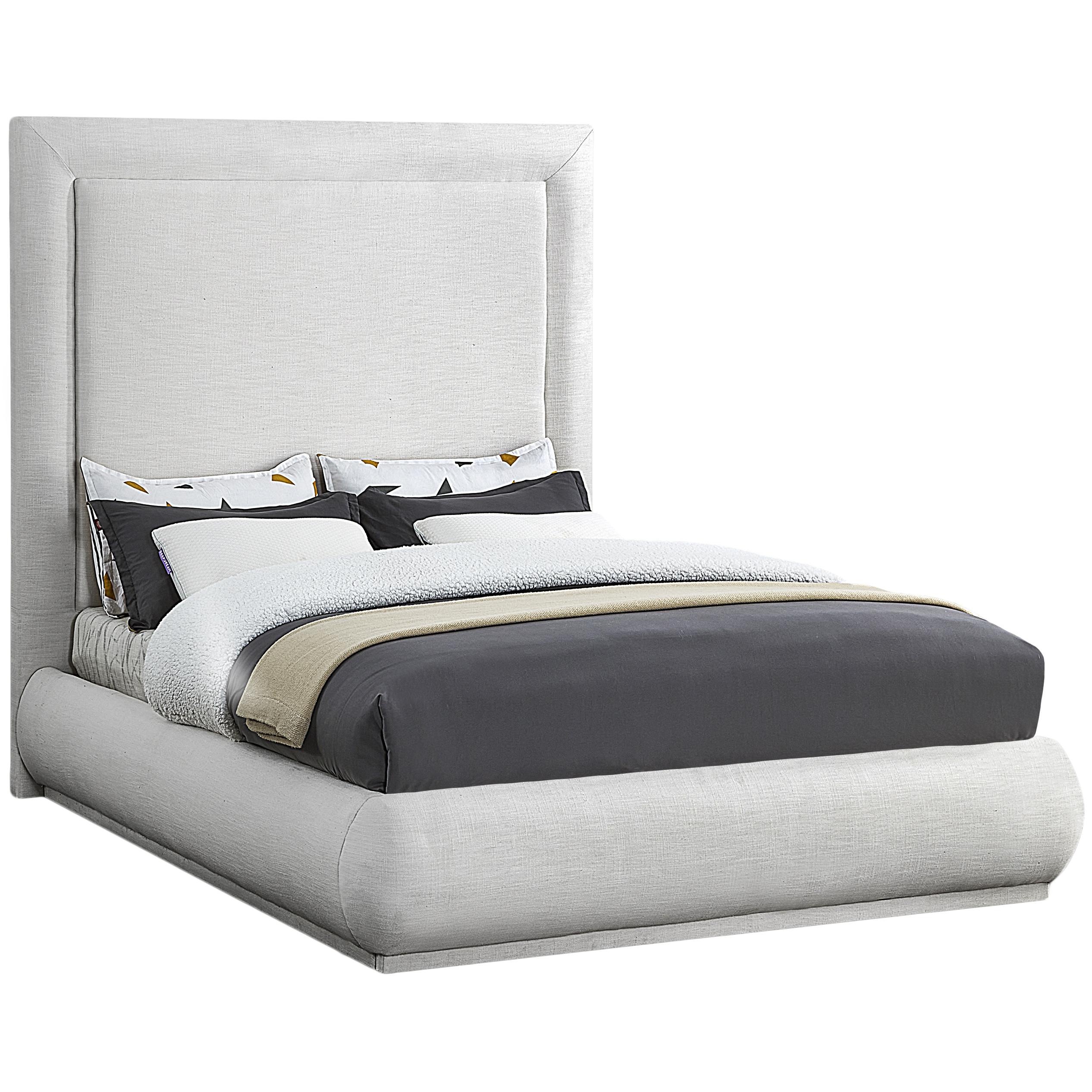 Meridian Brooke Cream Linen Textured Fabric Queen Bed
