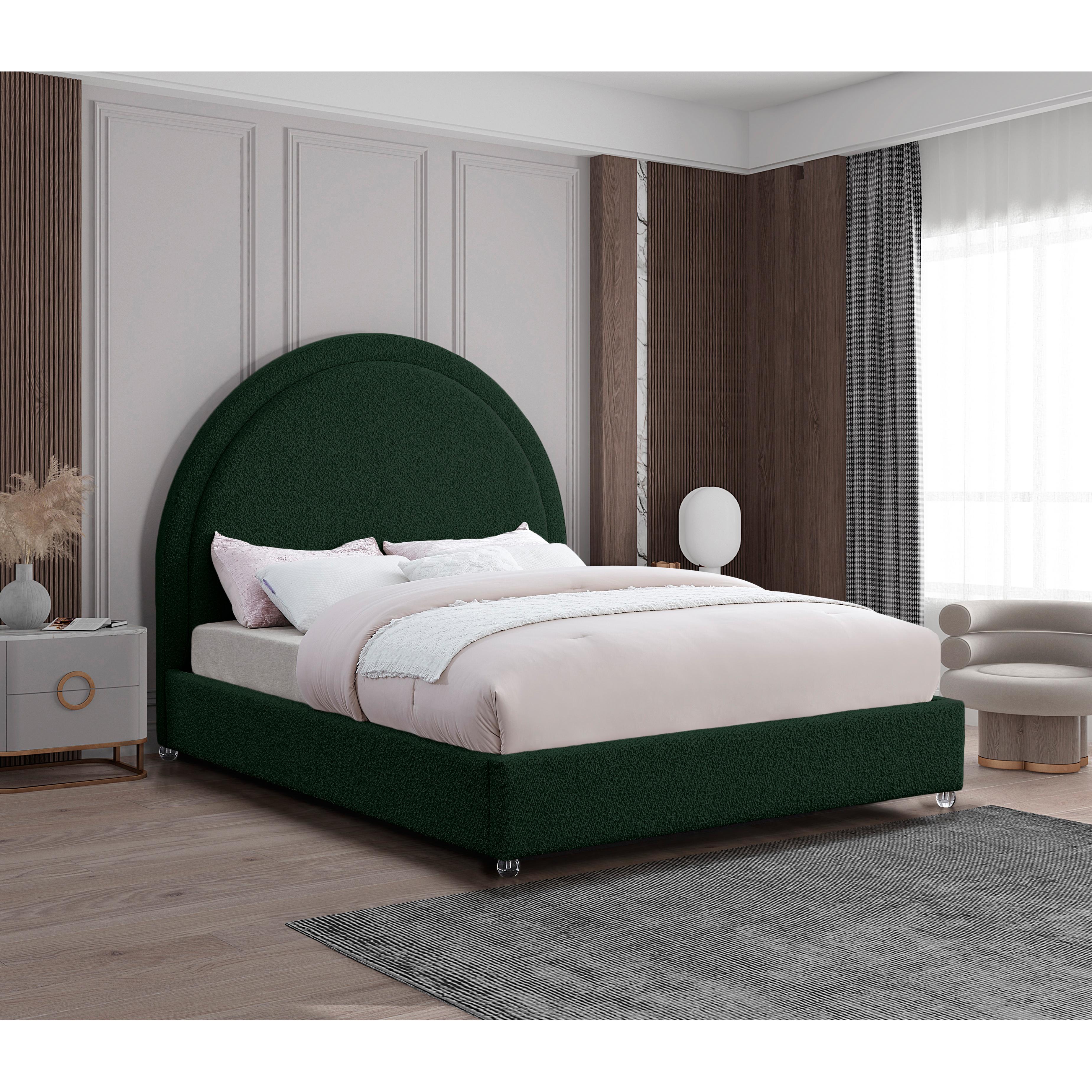 Meridian Monaco Green Boucle Fabric Queen Bed