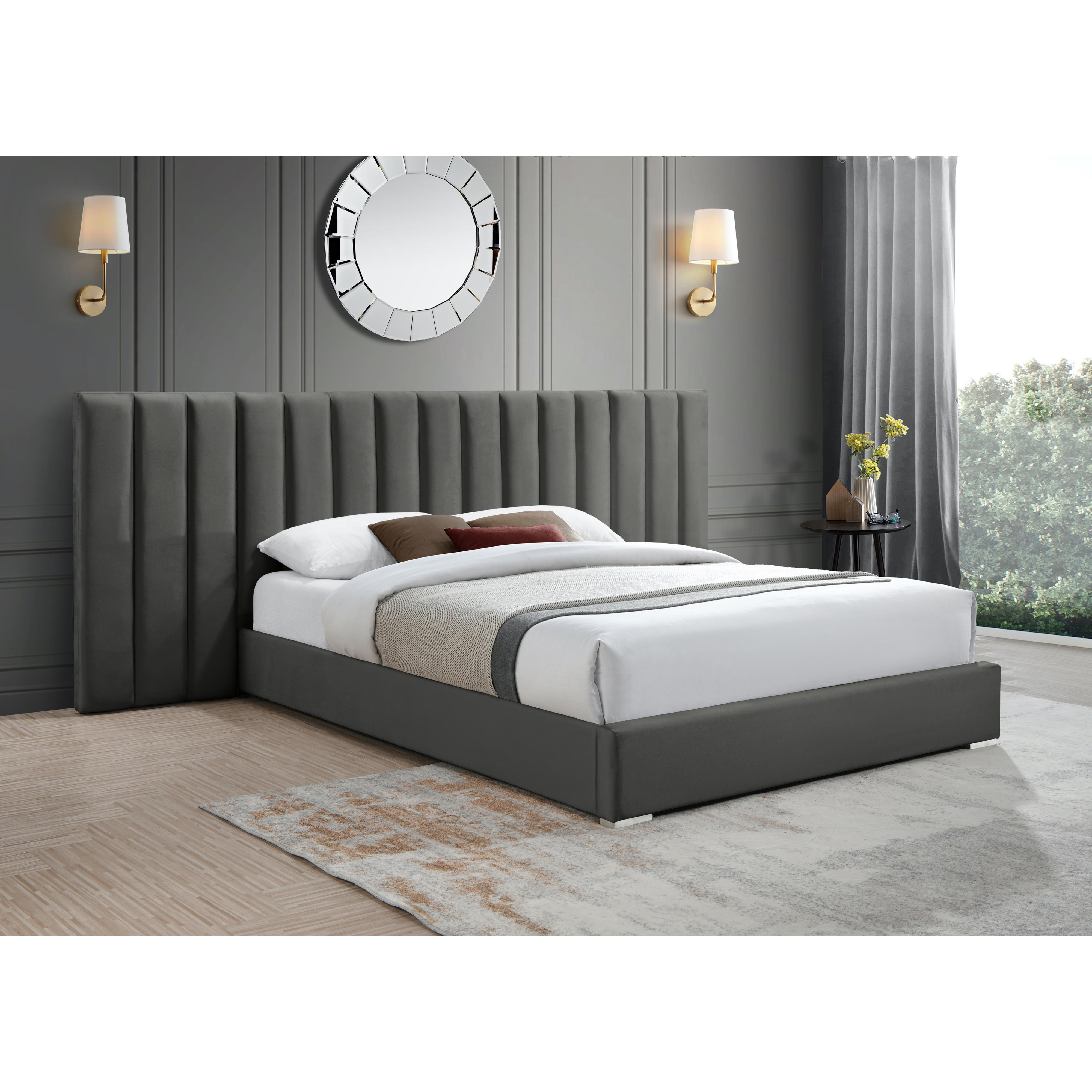 Meridian Tess Grey Velvet Queen Bed (3 Boxes)