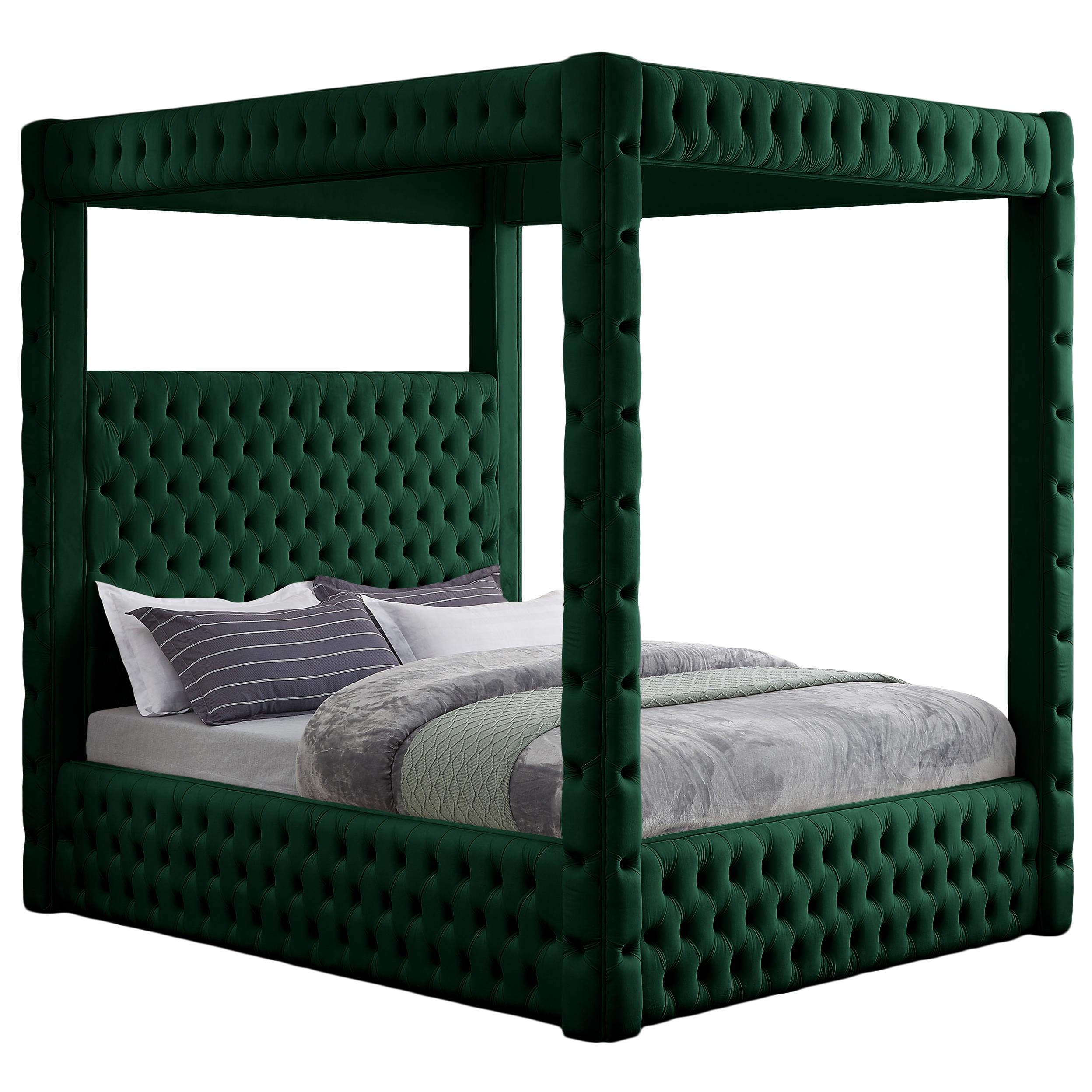 Meridian Royal Green Velvet Queen Bed (4 Boxes)