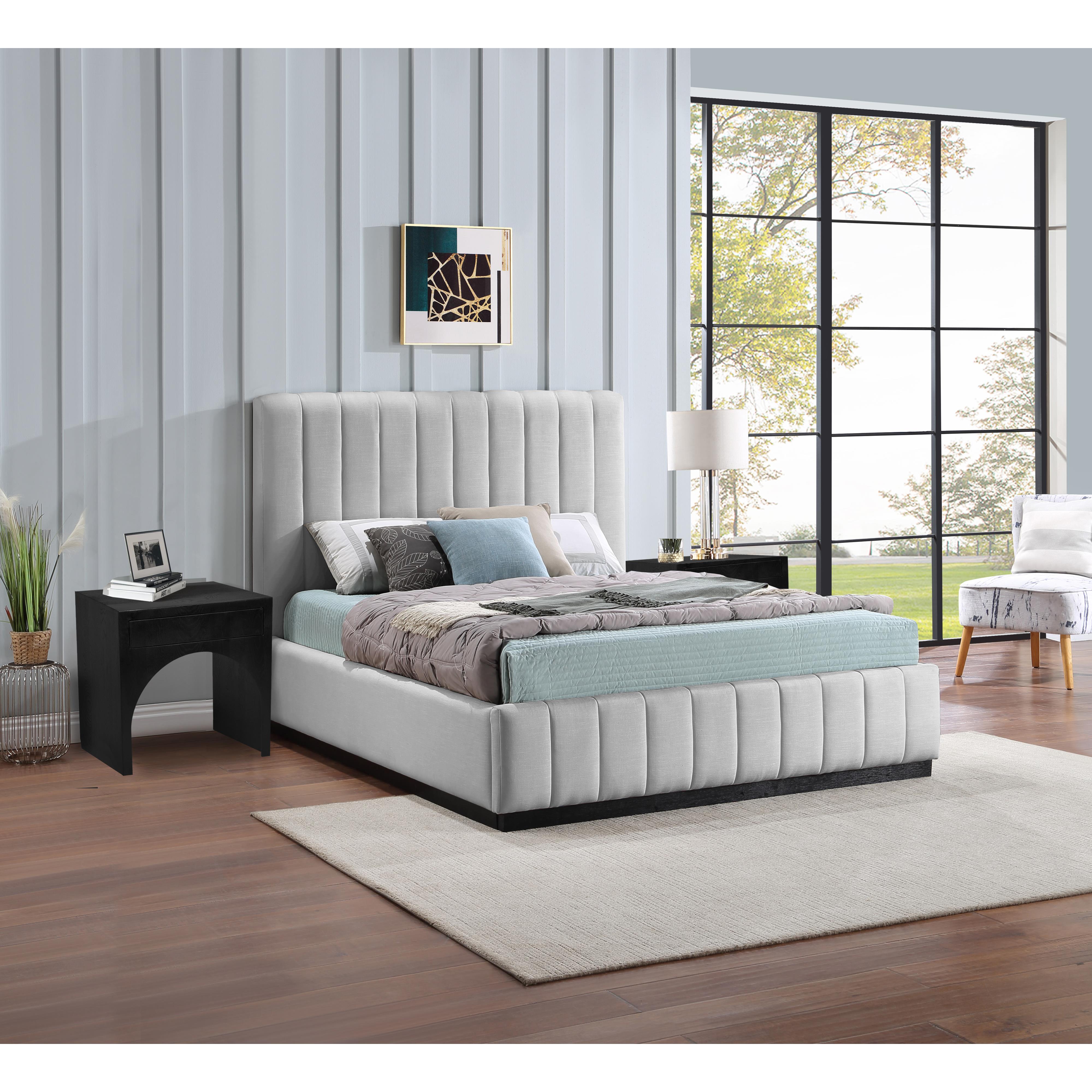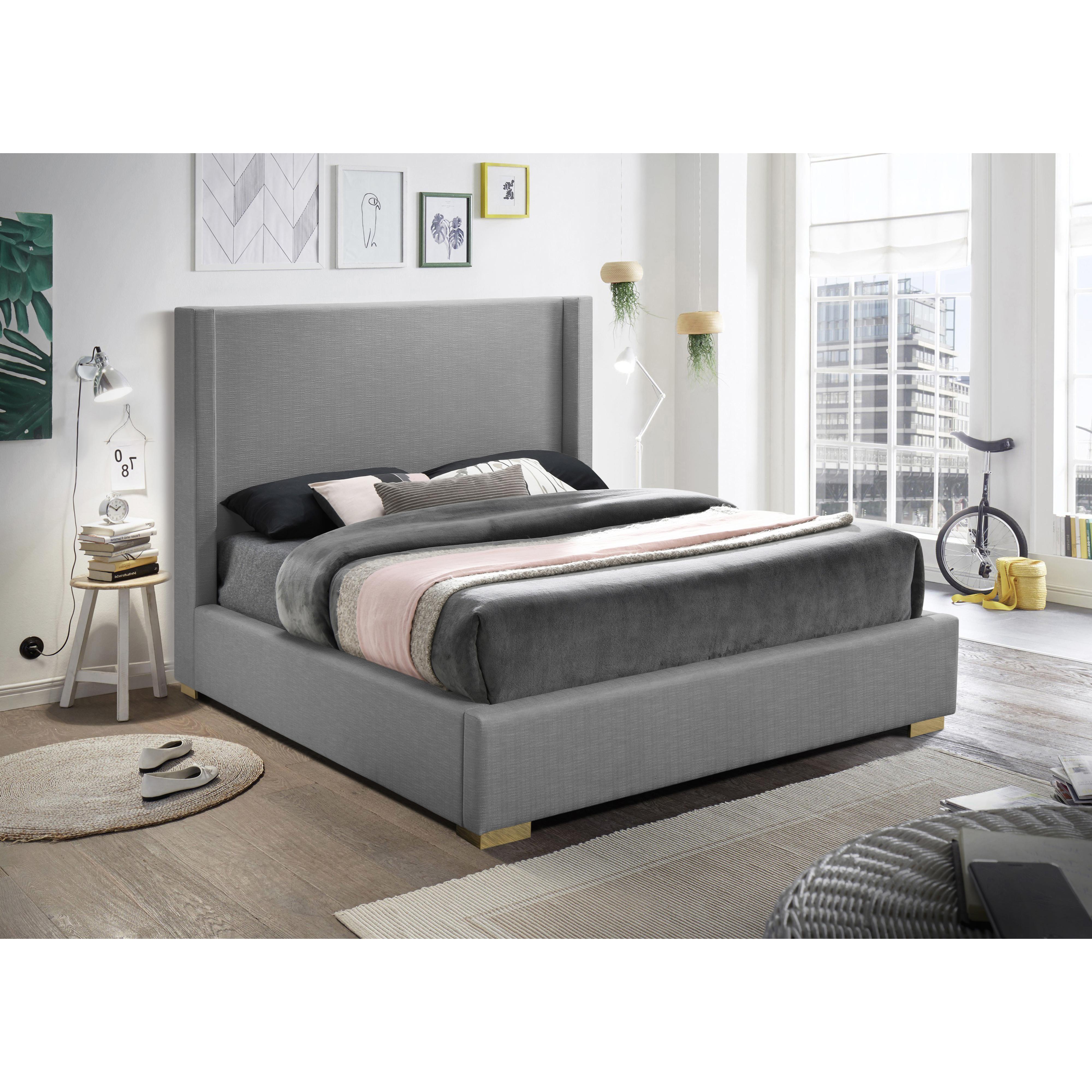 Meridian Nolita Grey Linen Textured Fabric Queen Bed