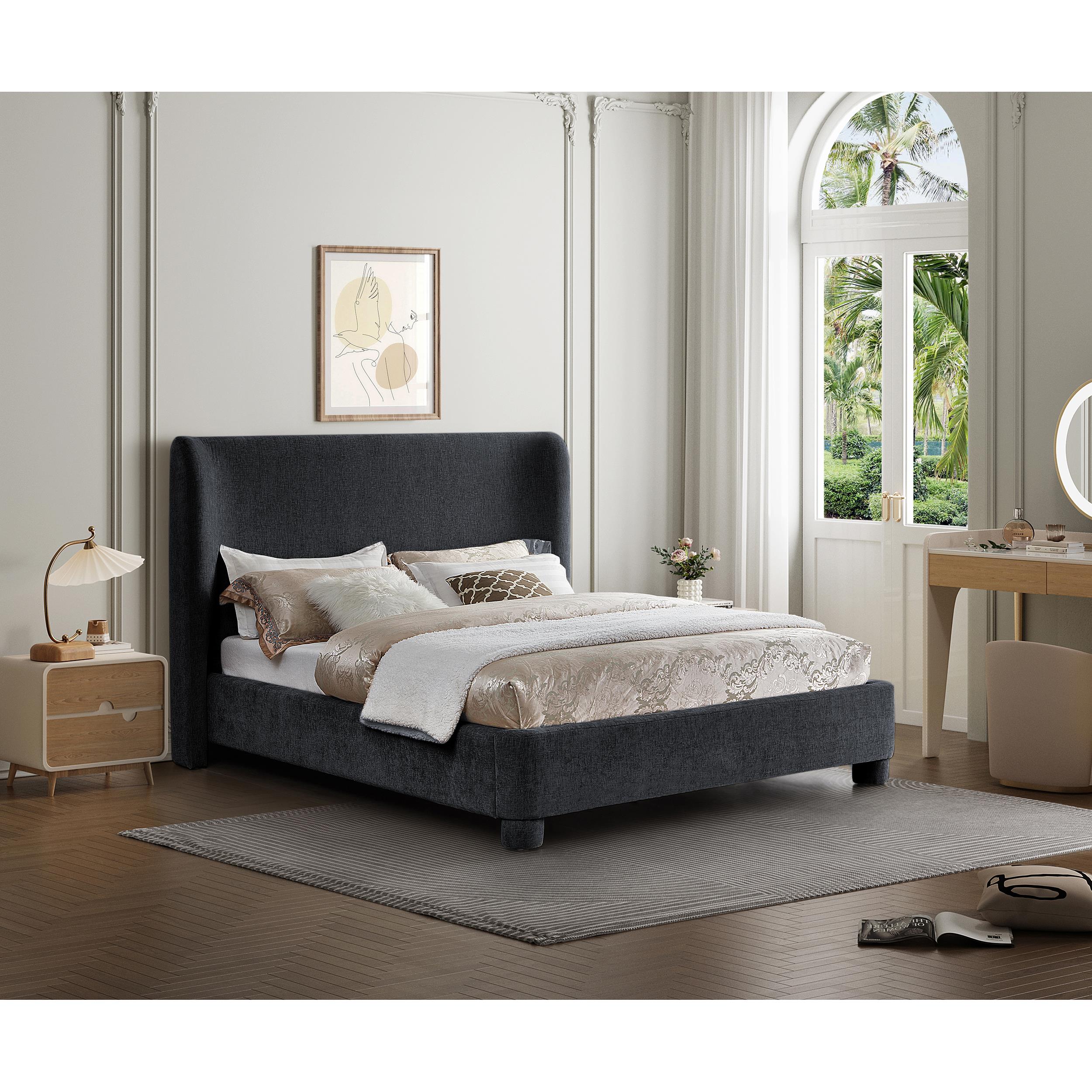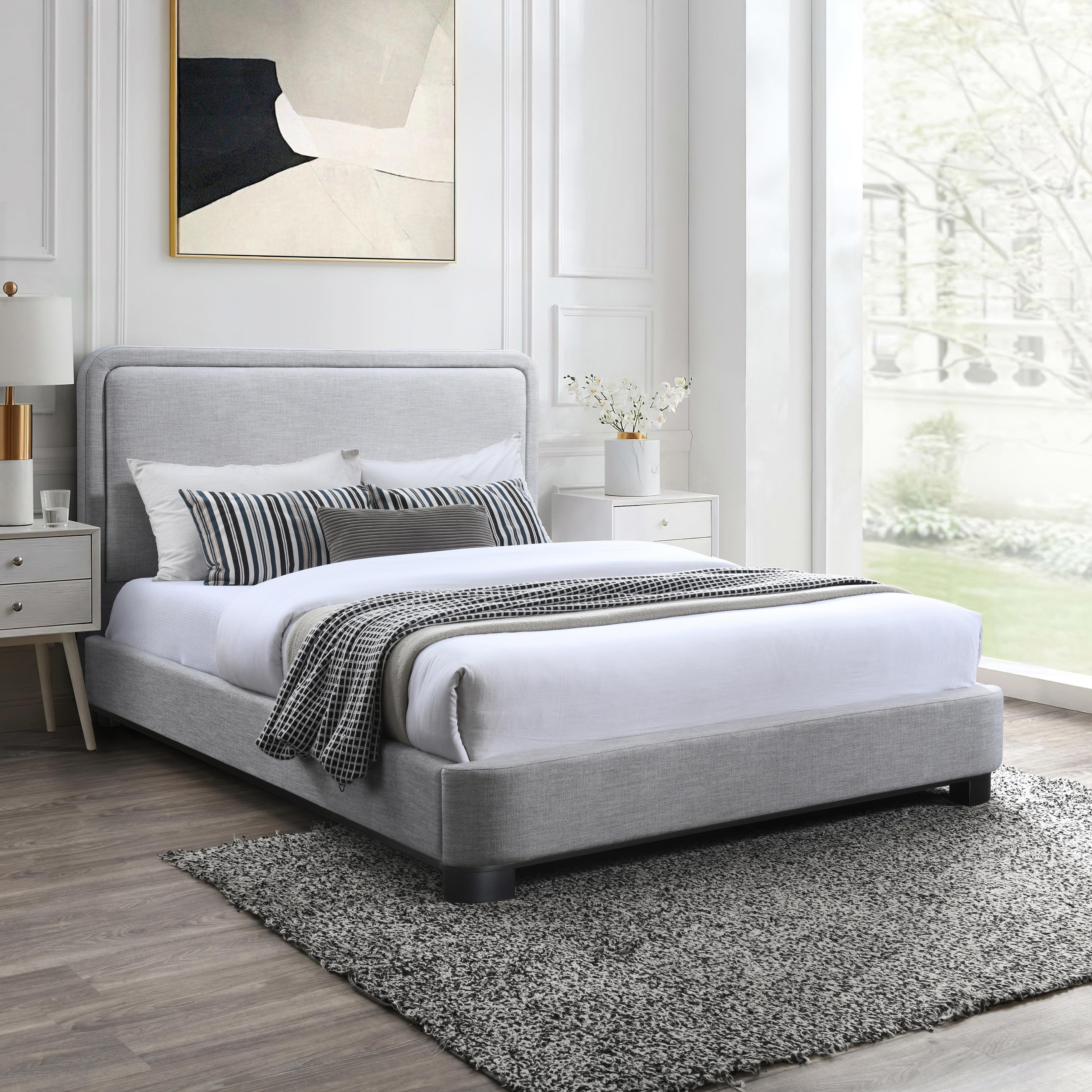 Meridian Royce Grey Linen Textured Fabric Queen Bed (3 Boxes)