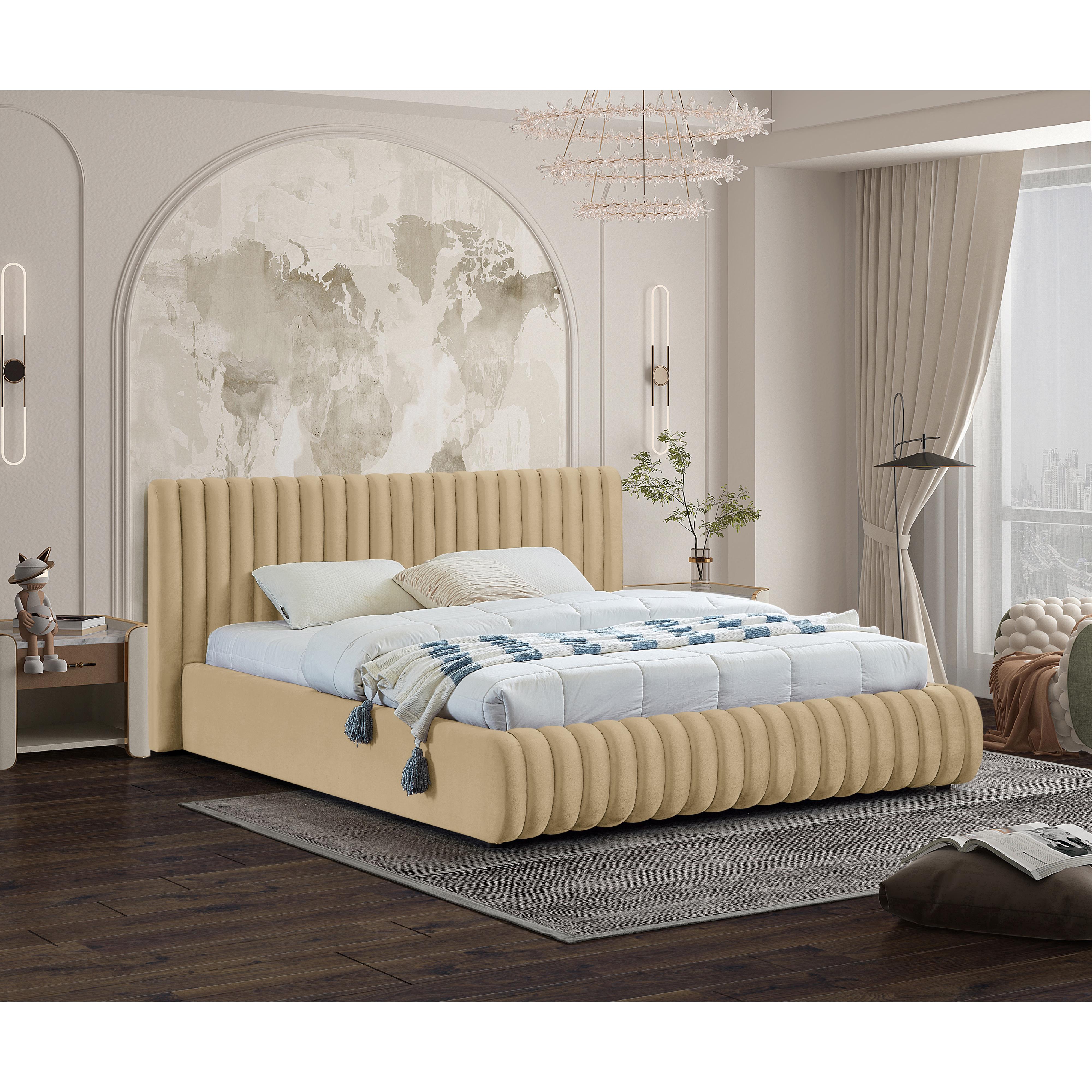 Meridian Tess Beige Velvet Queen Bed (3 Boxes)