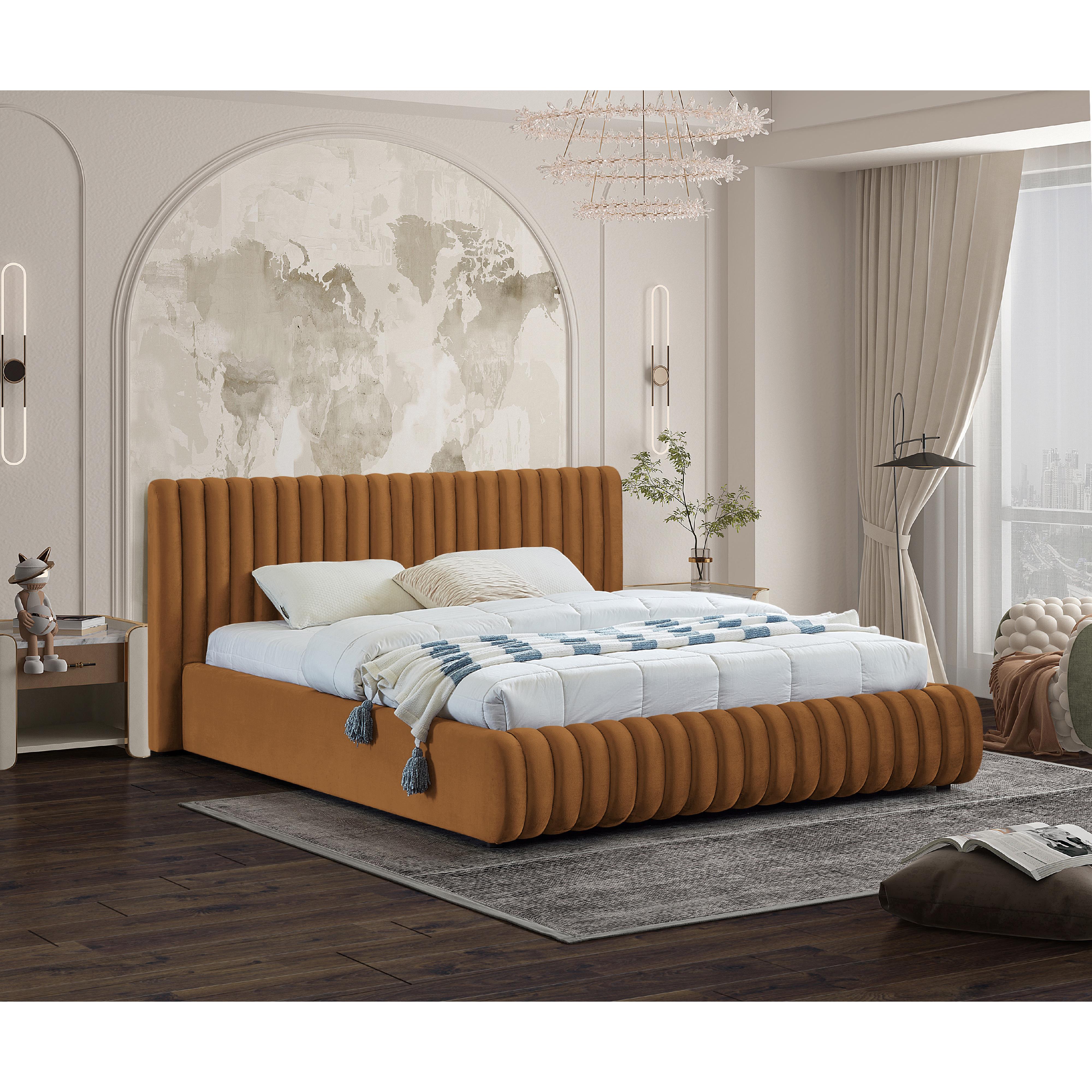 Meridian Sloan Saddle Velvet Queen Bed (3 Boxes)