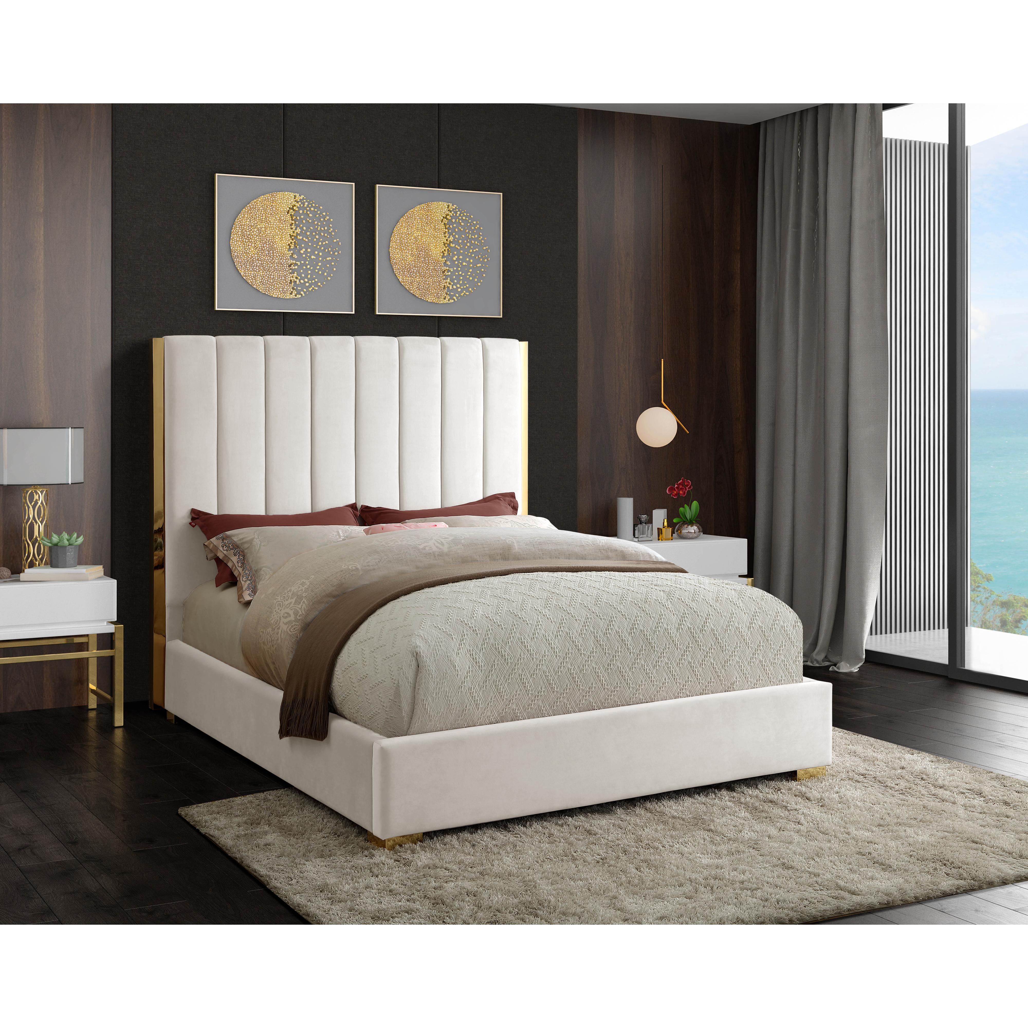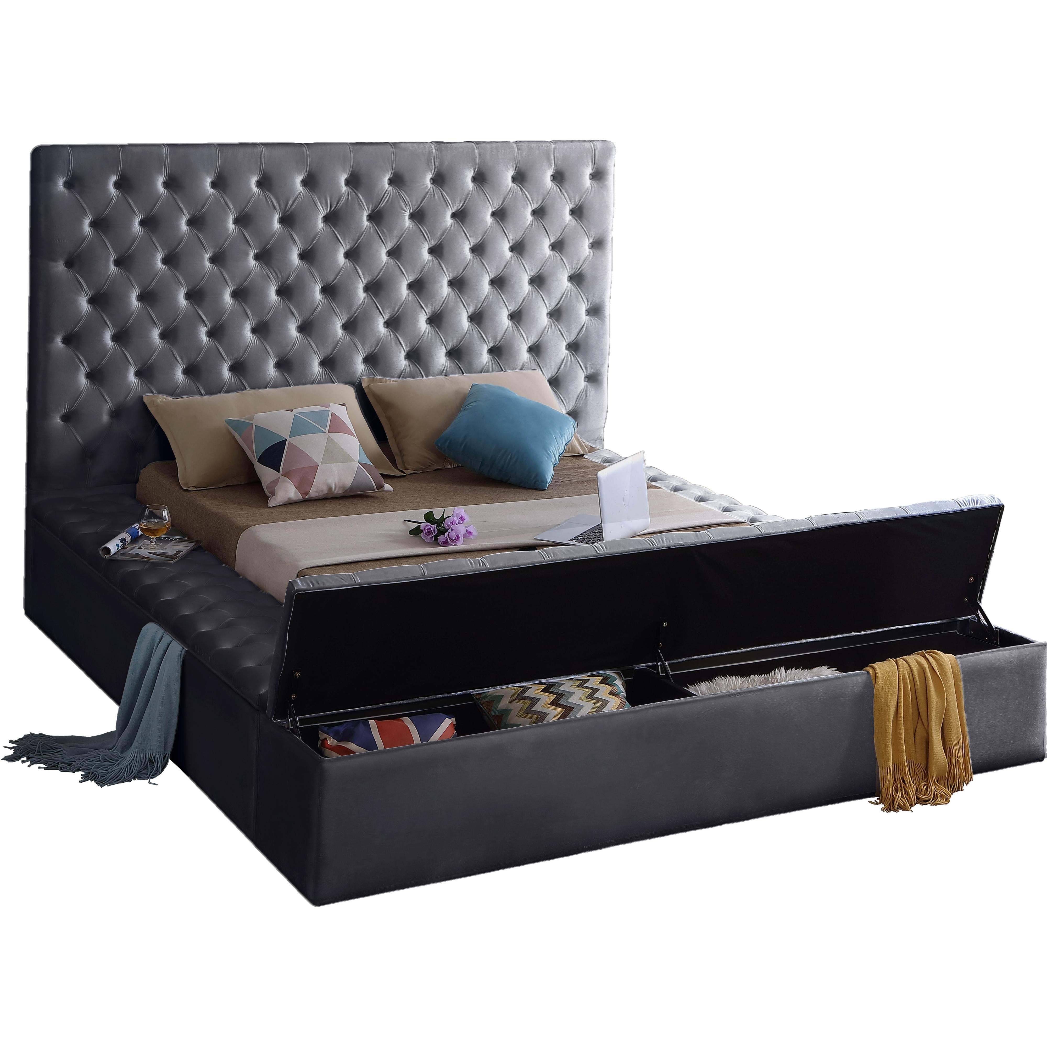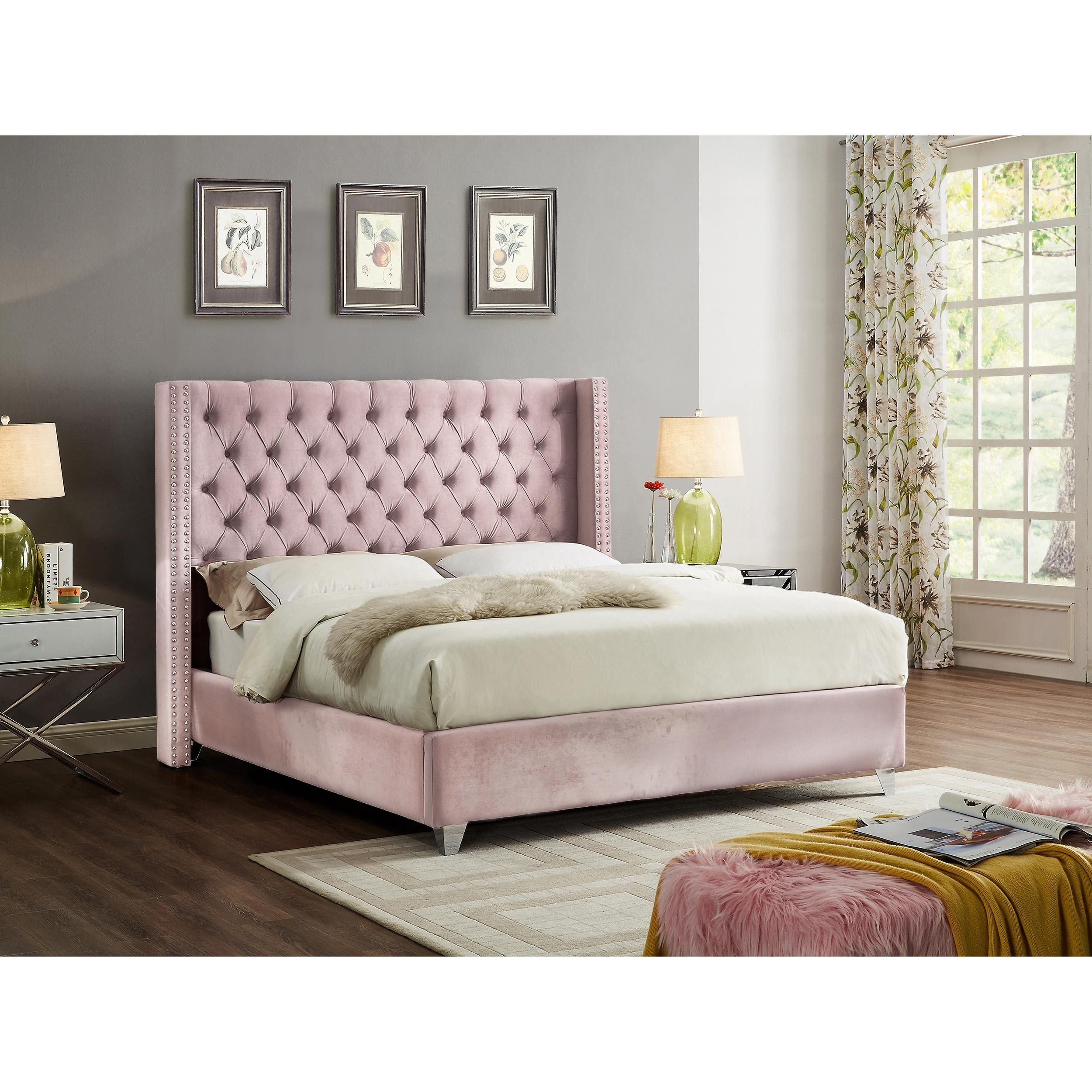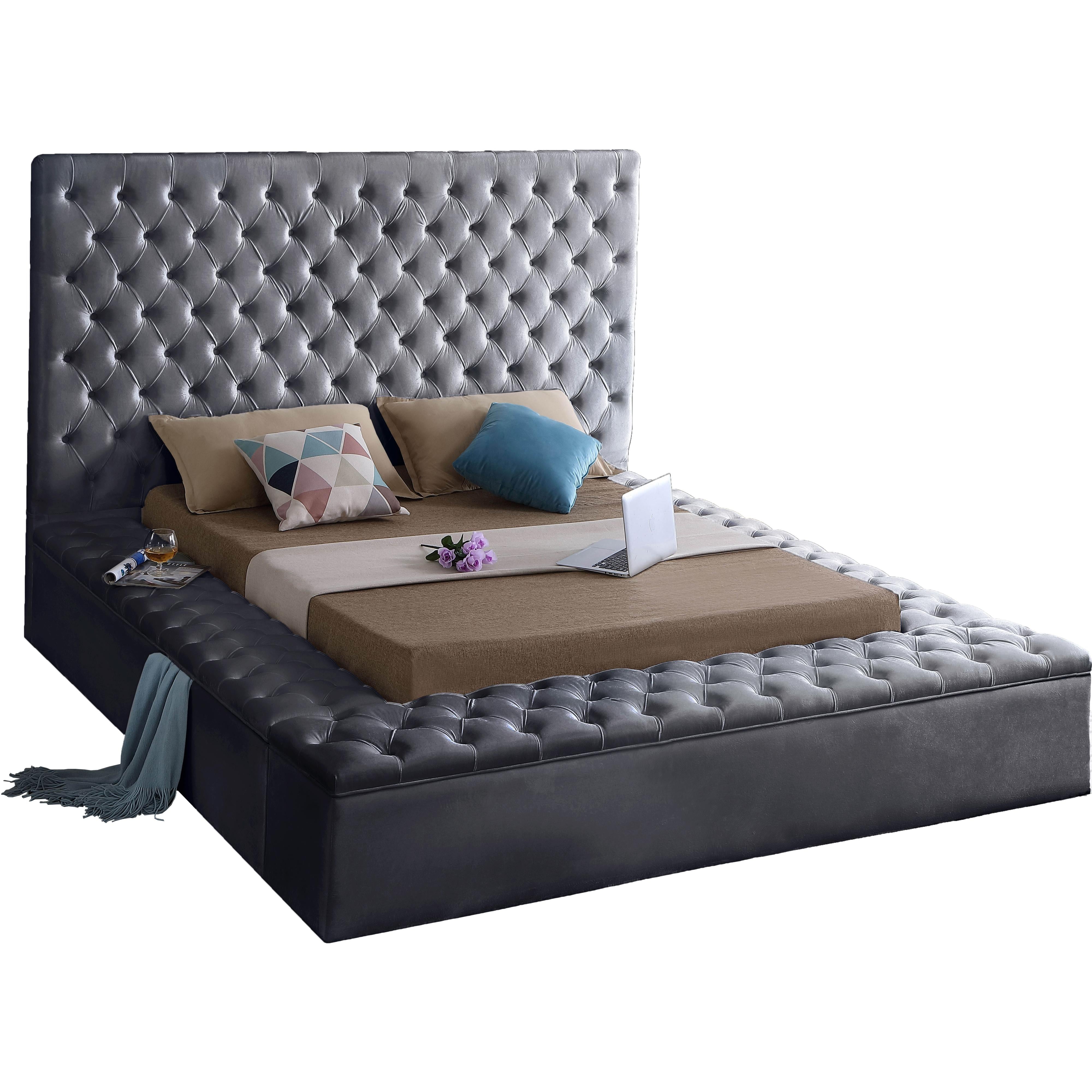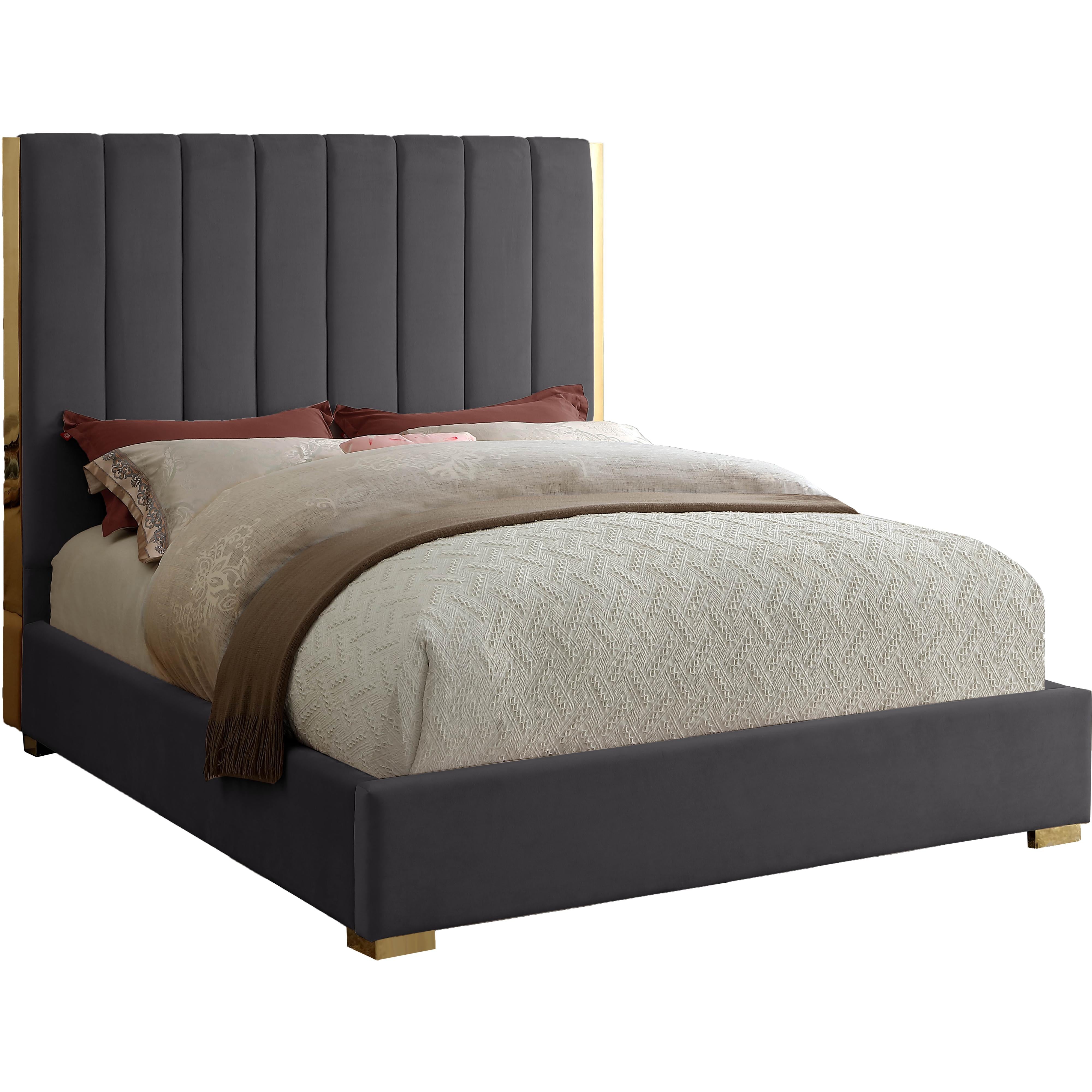 Meridian Bliss Grey Velvet Queen Bed (3 Boxes)