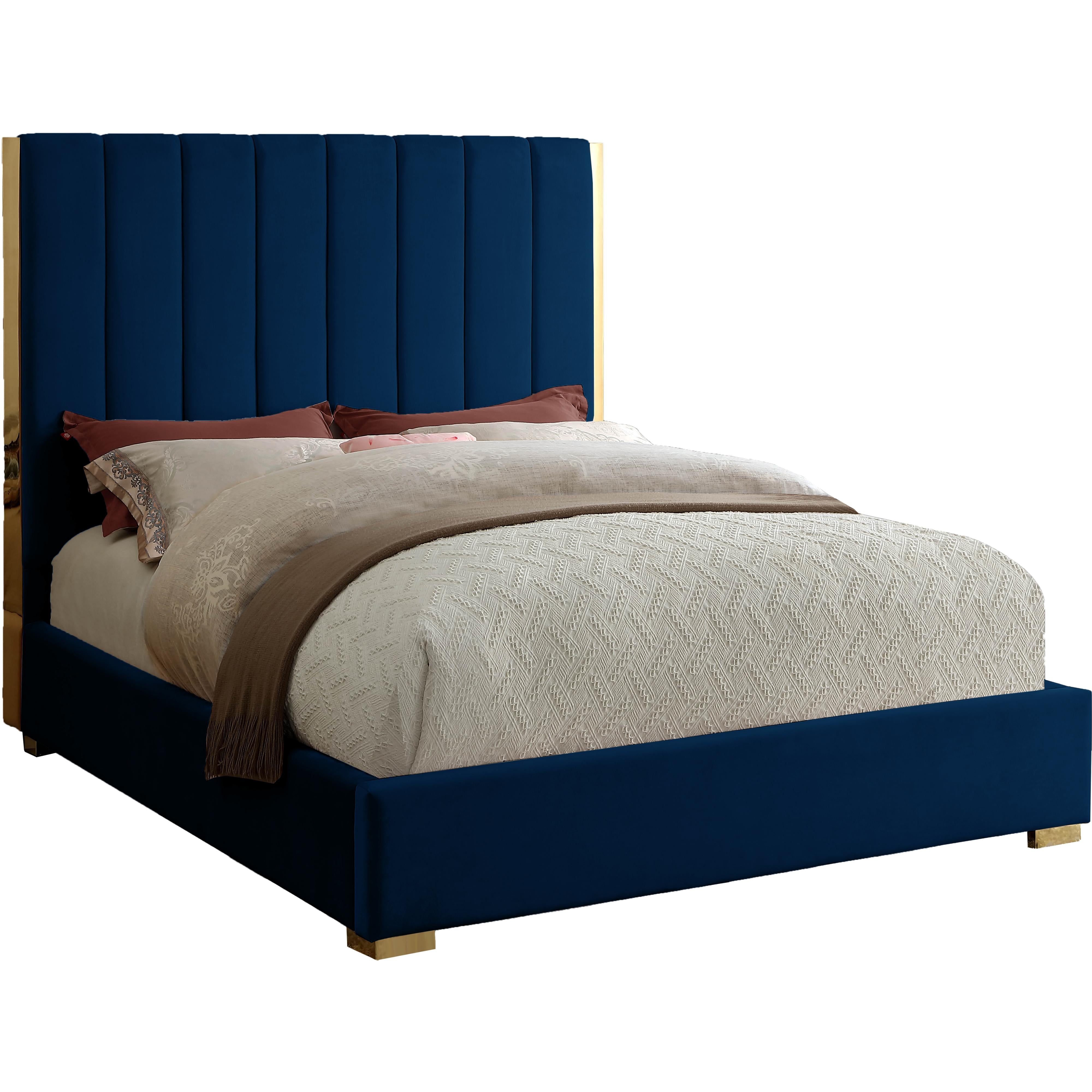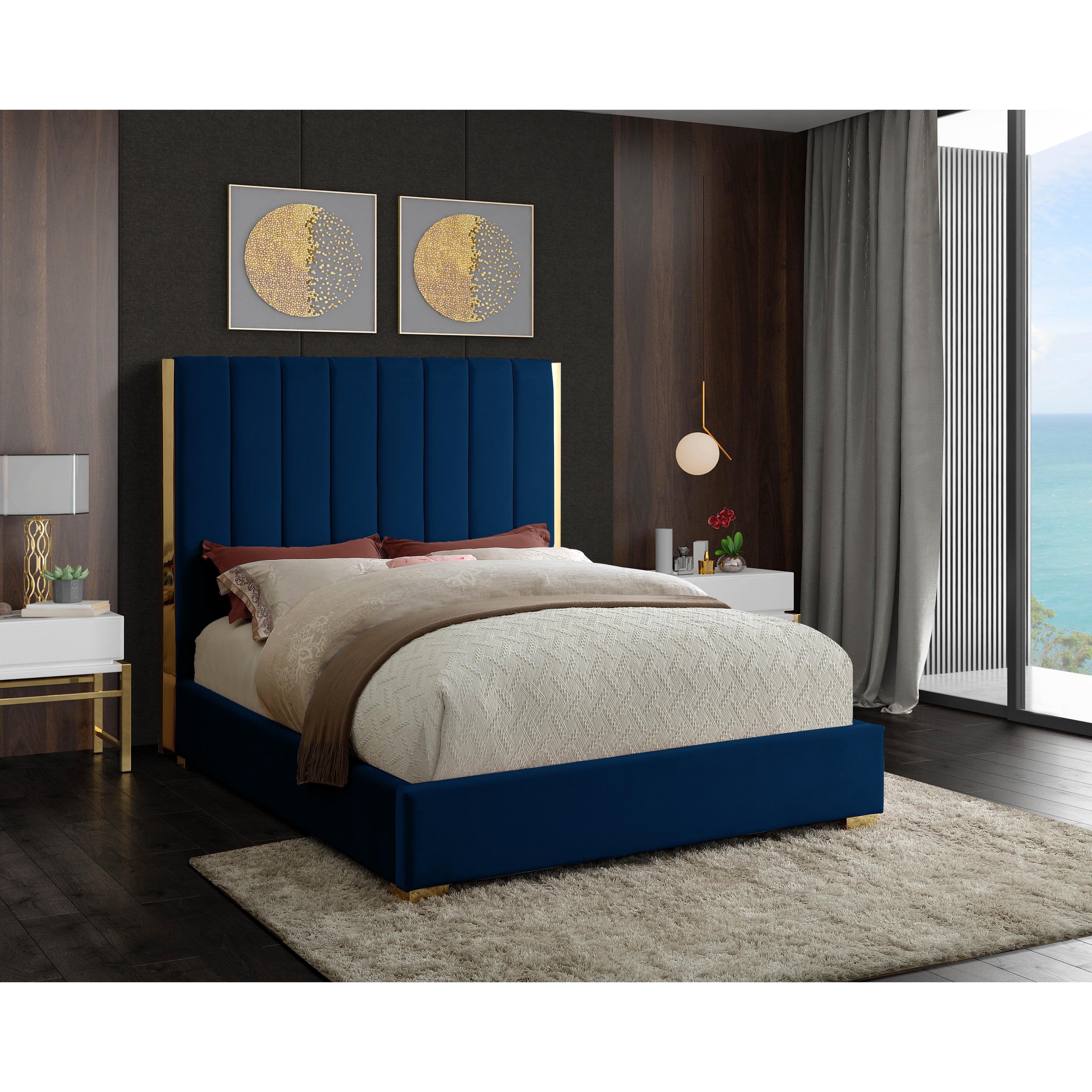 Meridian Bliss Navy Velvet Queen Bed (3 Boxes)