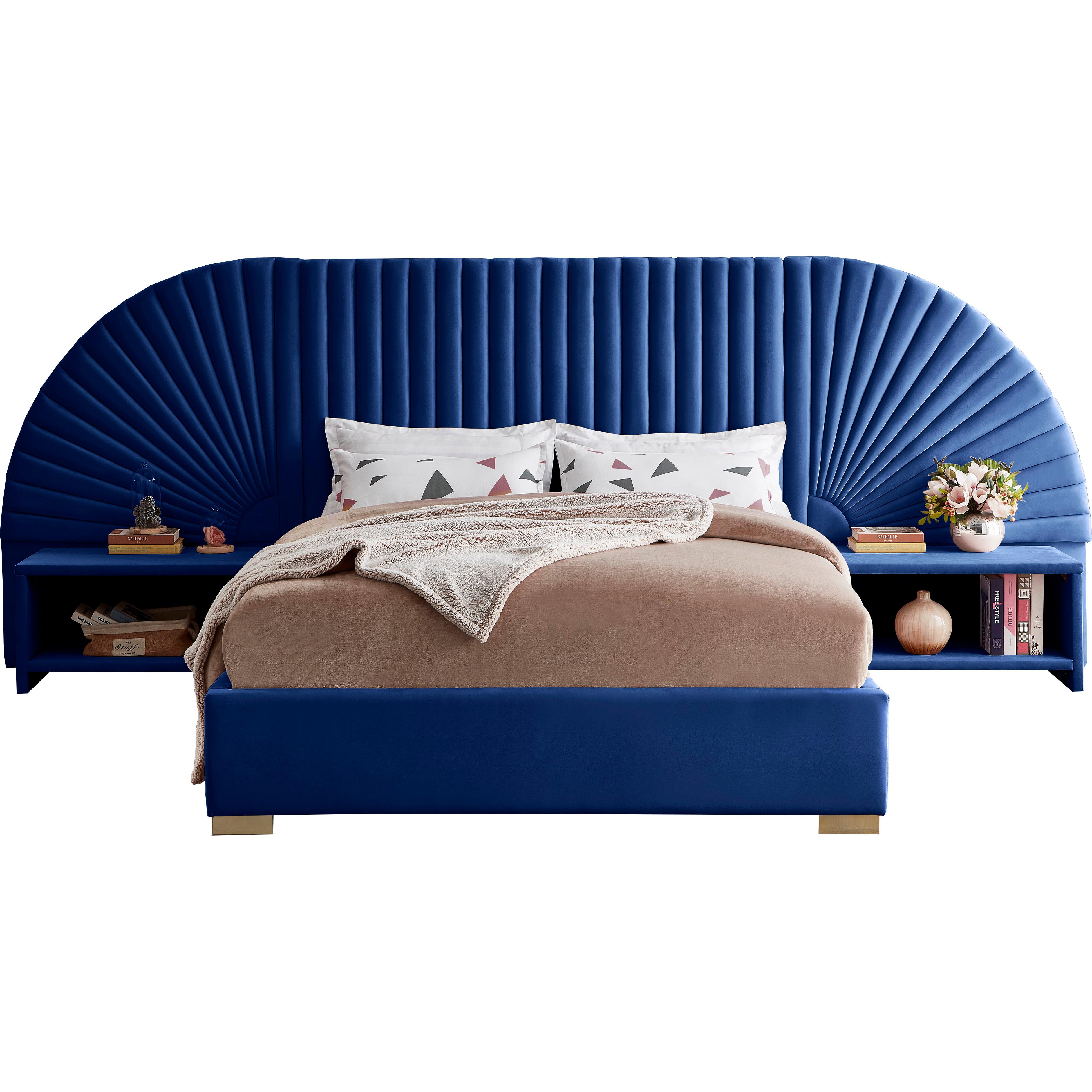 Meridian Cleo Navy Velvet Queen Bed (3 Boxes)