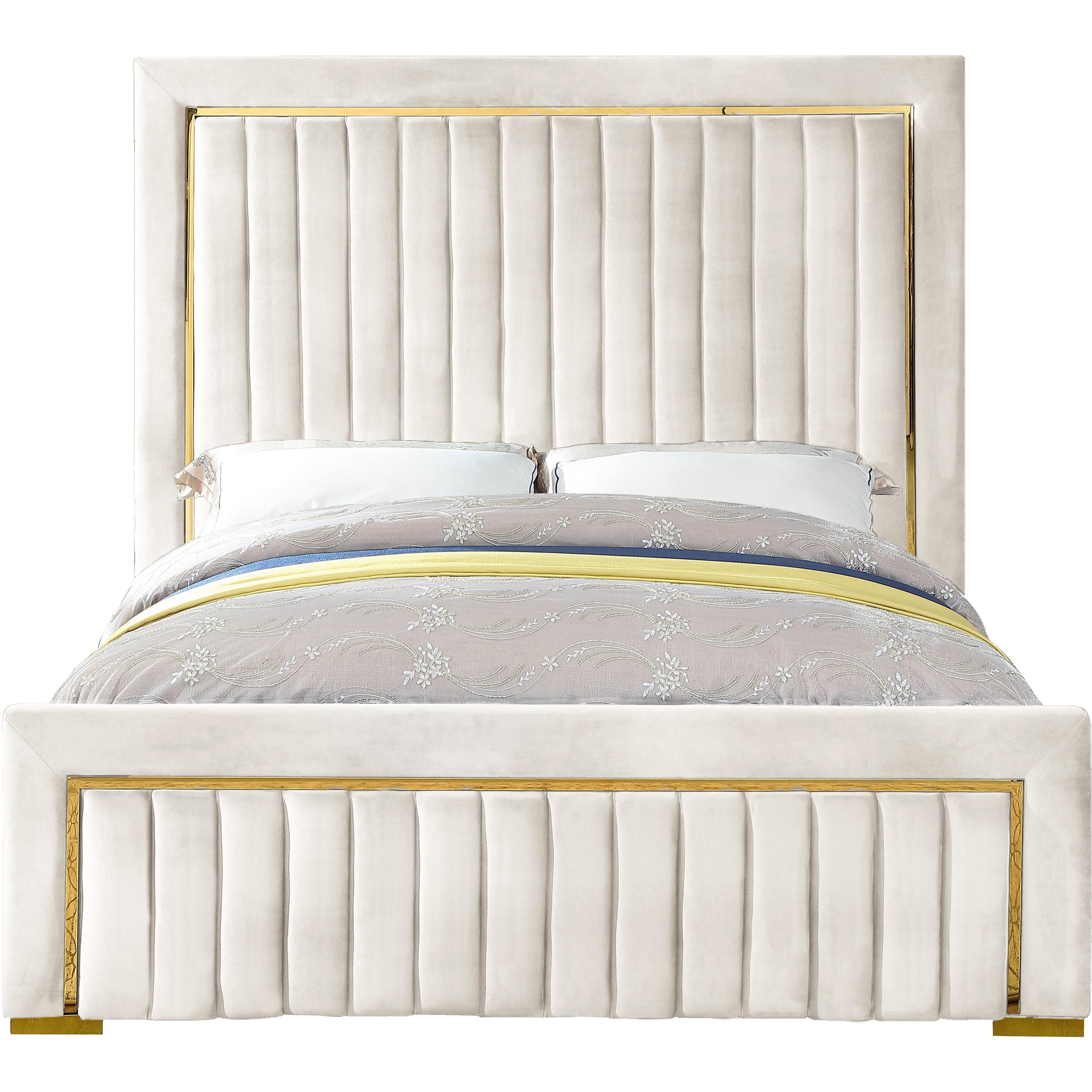 Meridian Dolce Cream Velvet Queen Bed (3 Boxes)