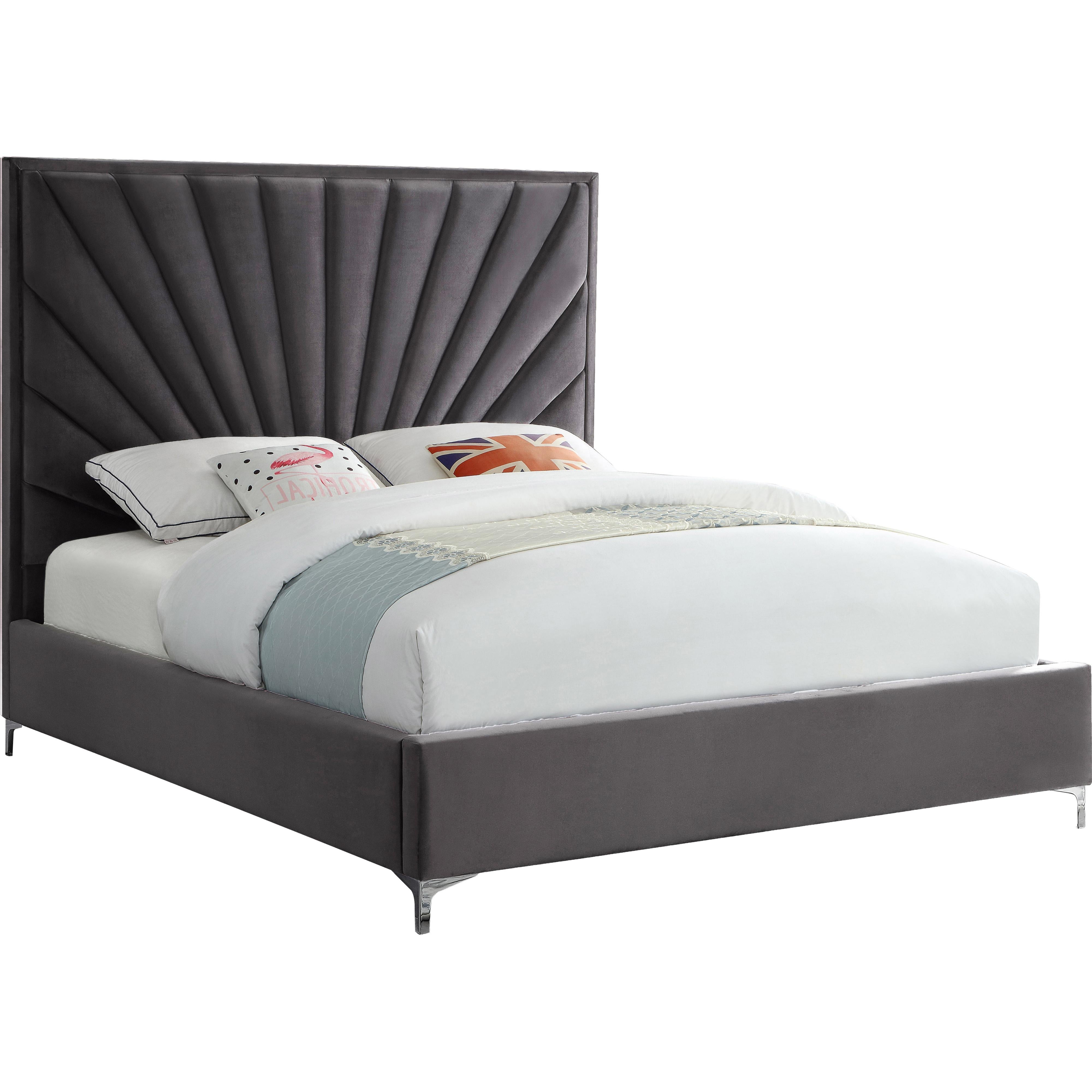 Meridian Flora Grey Velvet Queen Bed (3 Boxes)