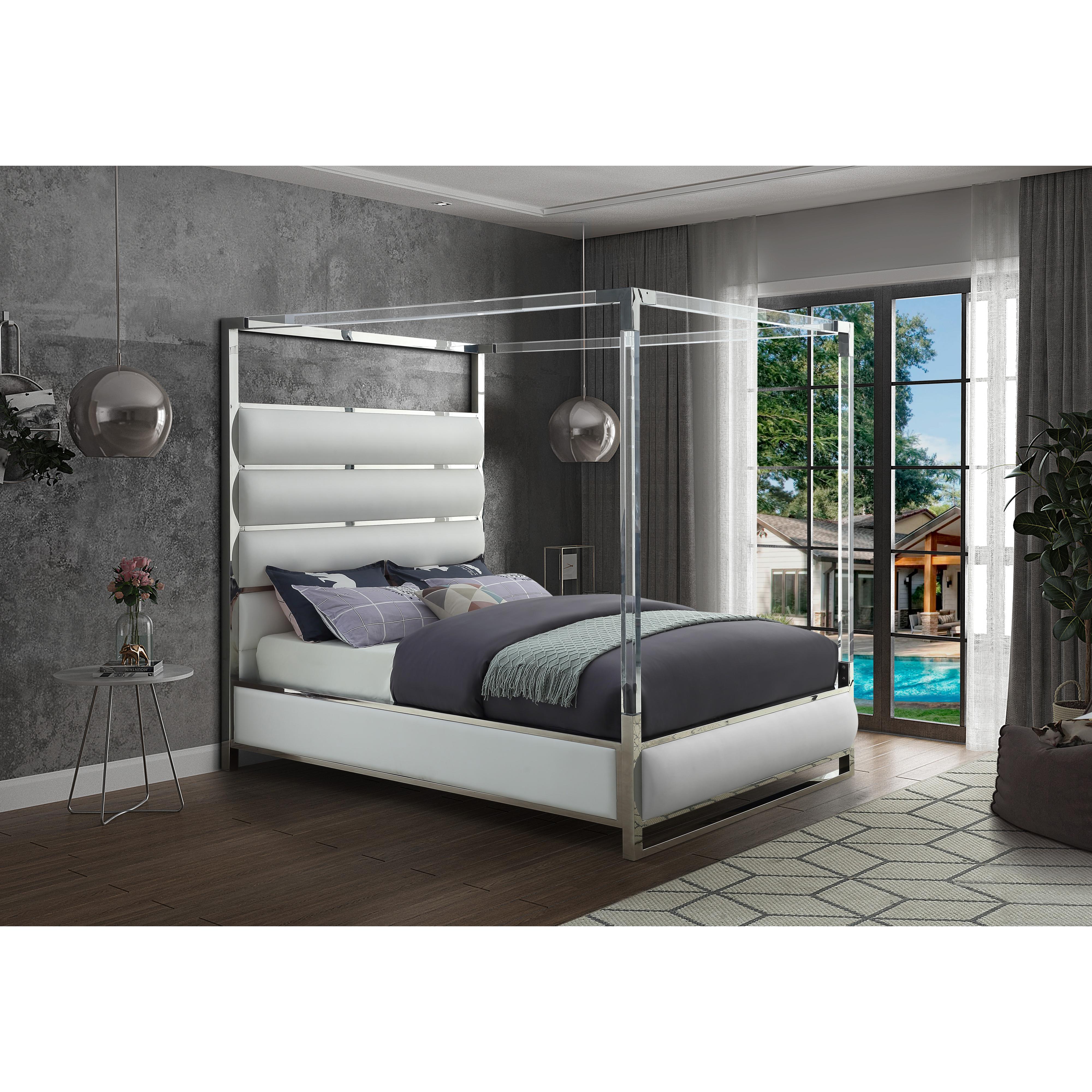 Meridian Encore White Vegan Leather Queen Bed (4 Boxes)