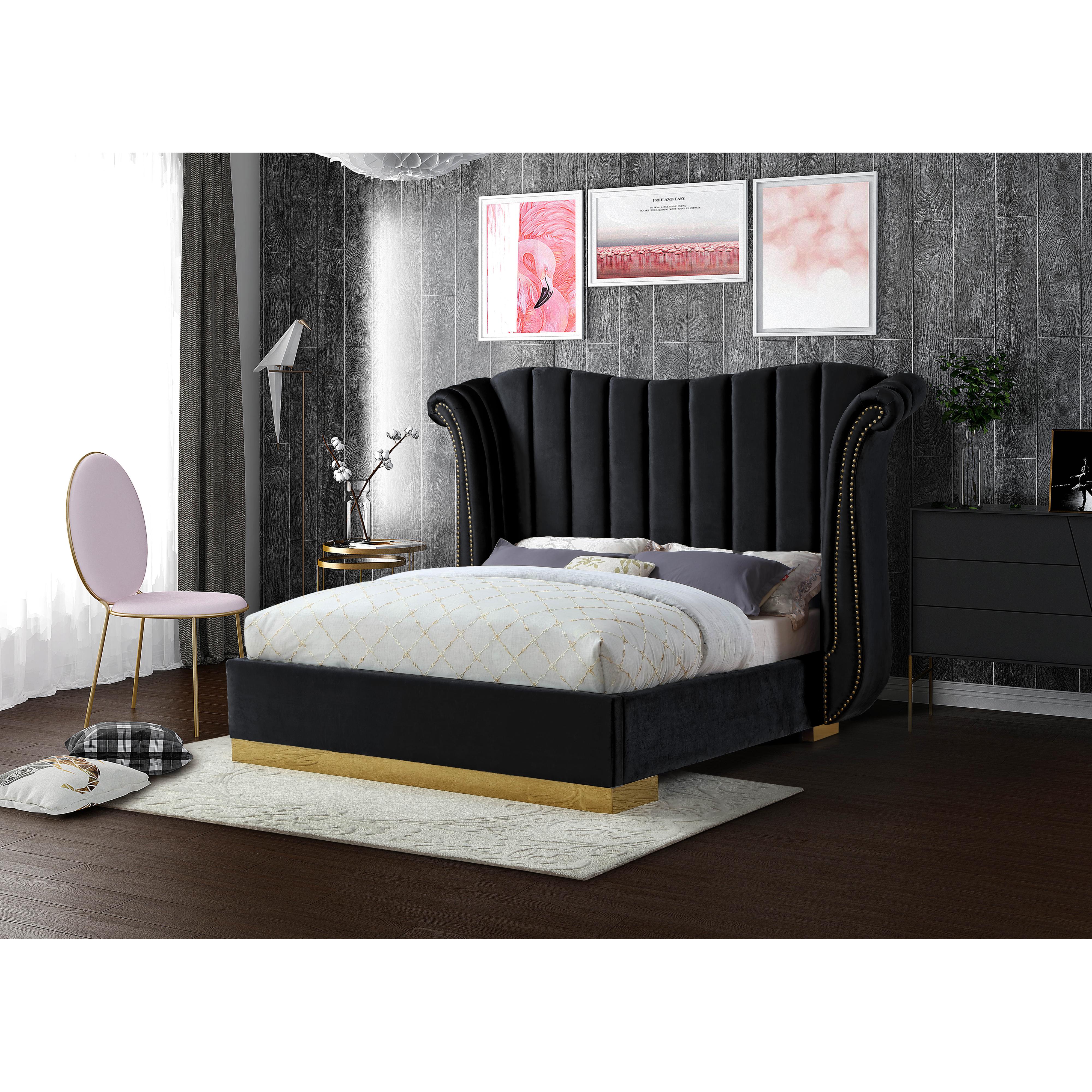 Meridian Cleo Black Velvet Queen Bed (3 Boxes)