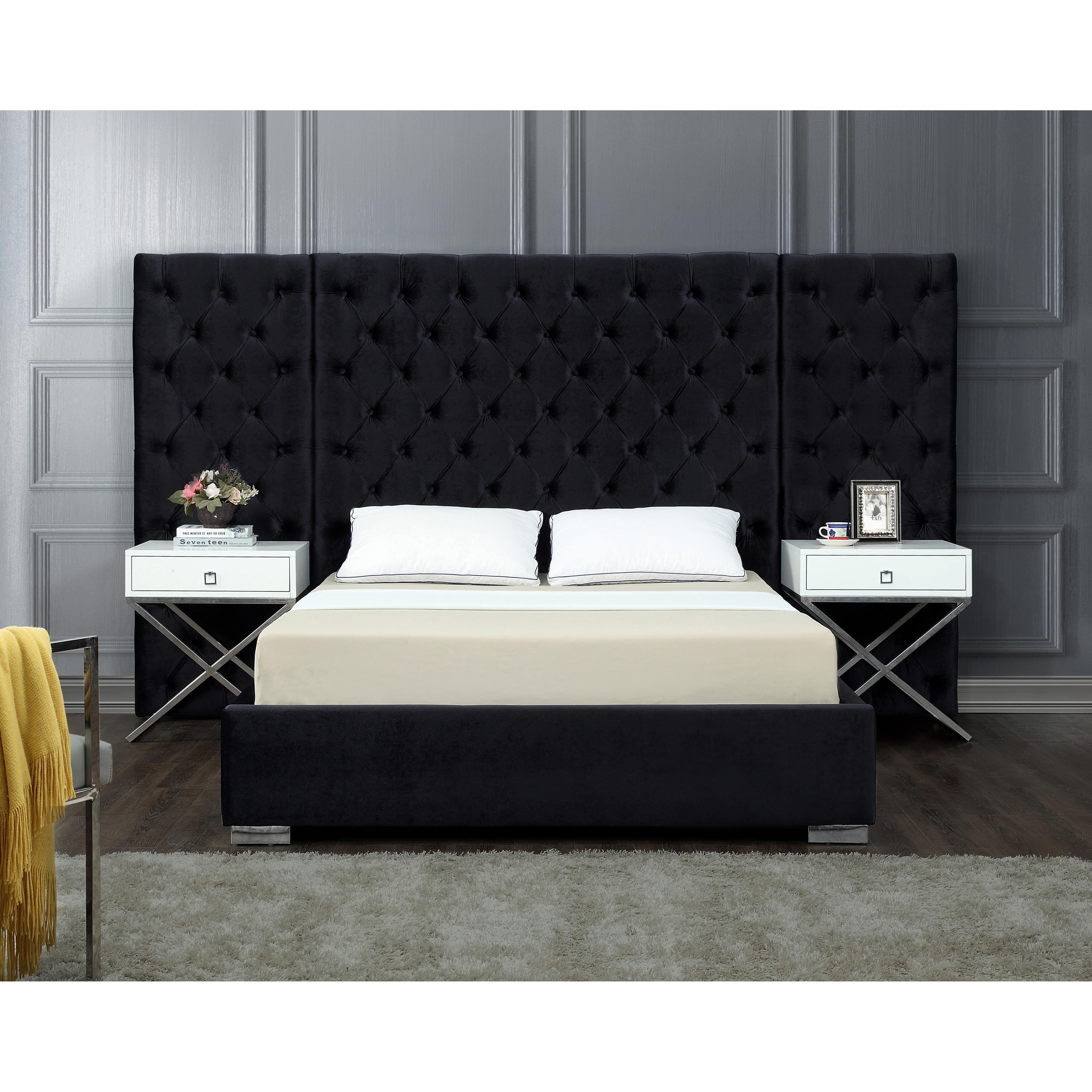 Meridian Grande Black Velvet Queen Bed (3 Boxes)