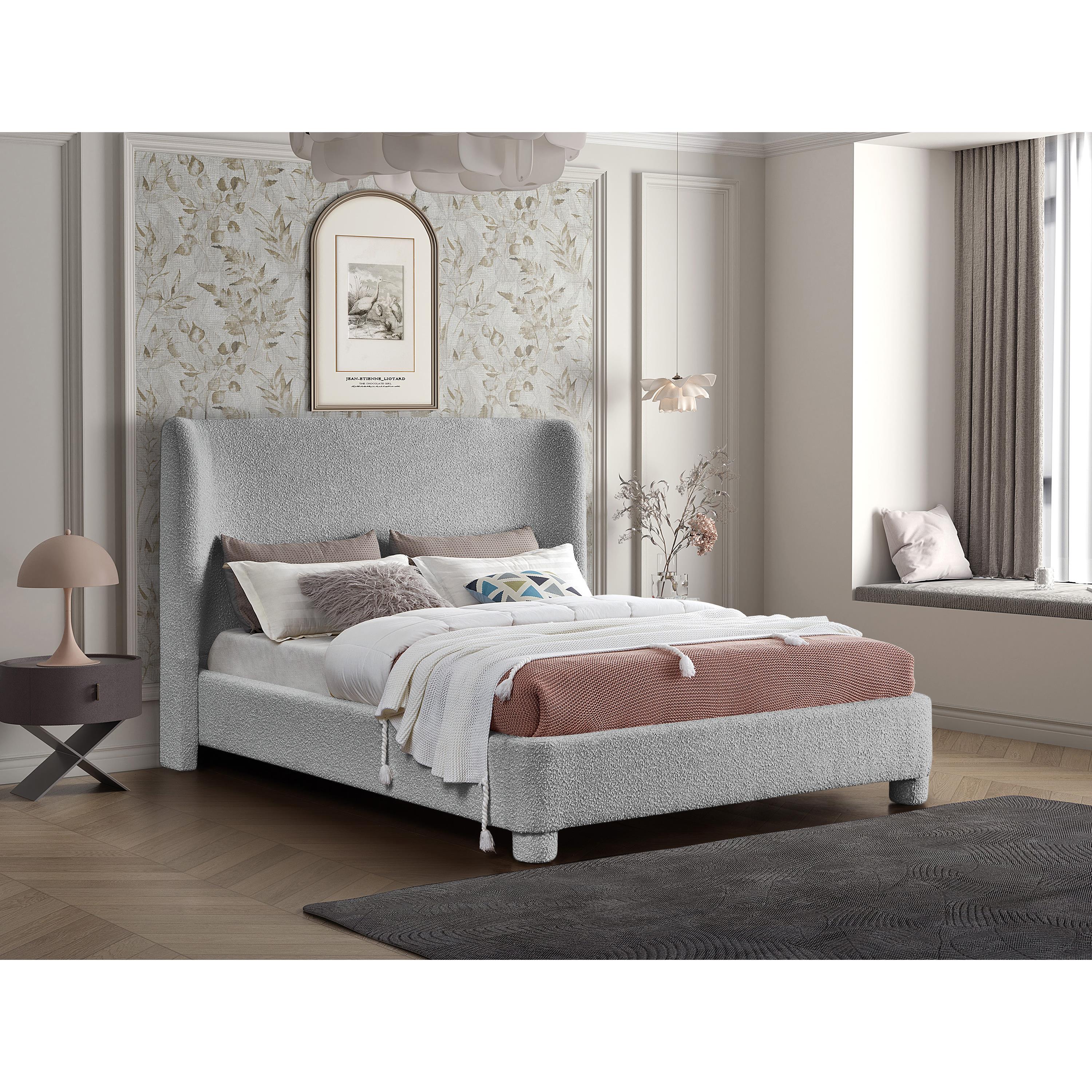Meridian Penny Grey Boucle Fabric Queen Bed