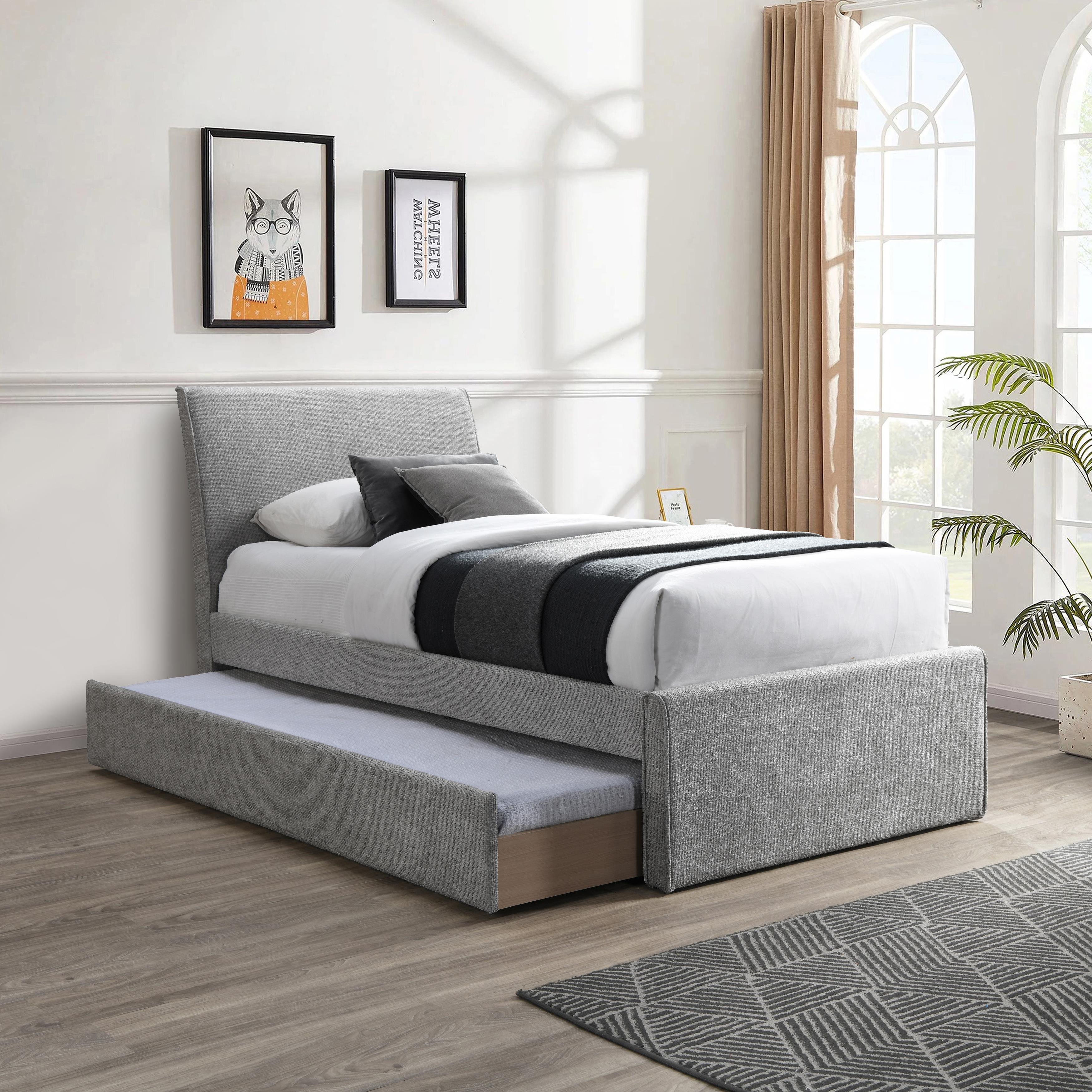 Meridian Myles Grey Linen Textured Fabric Twin Trundle Bed