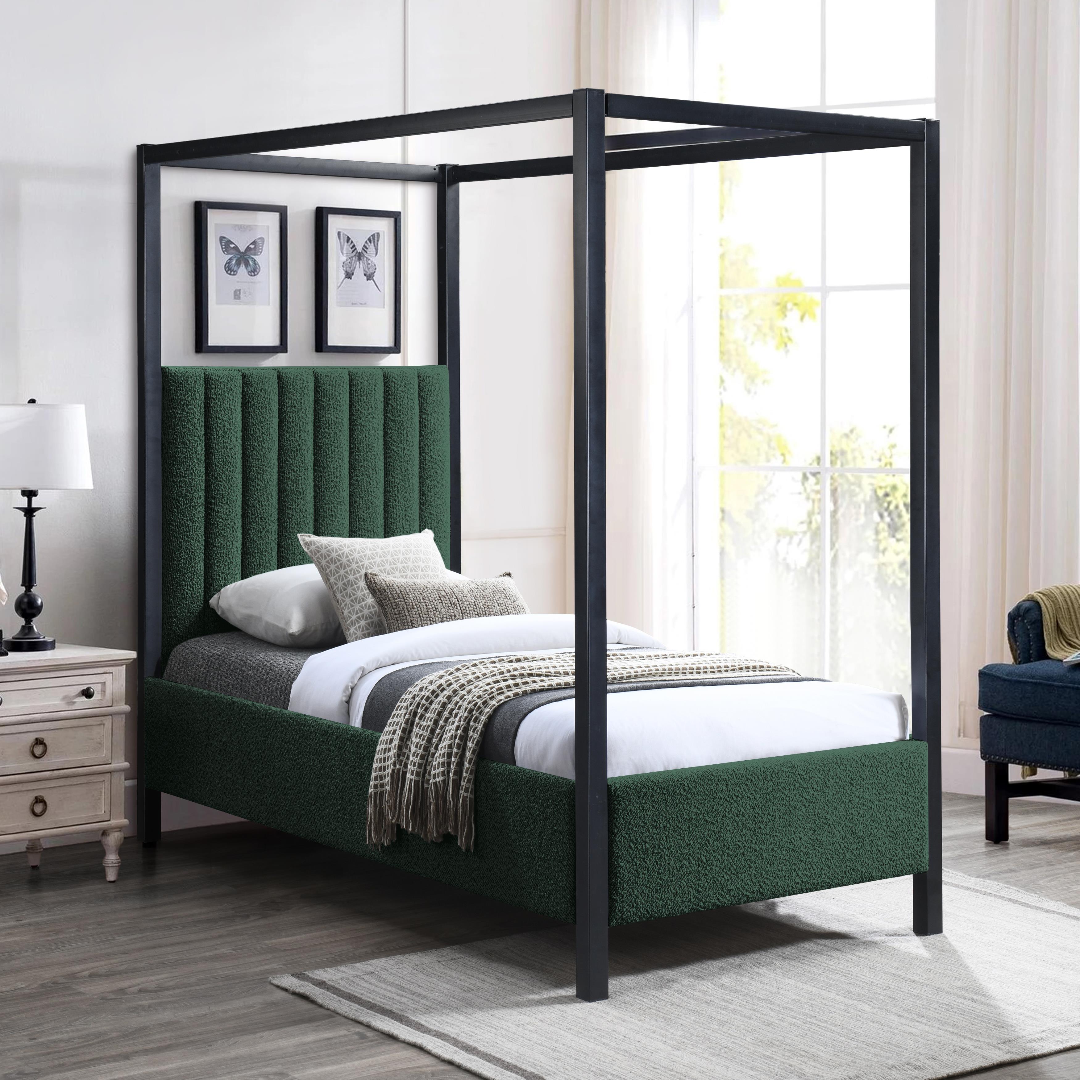 Meridian Kelly Green Boucle Fabric Twin Bed (3 Boxes)