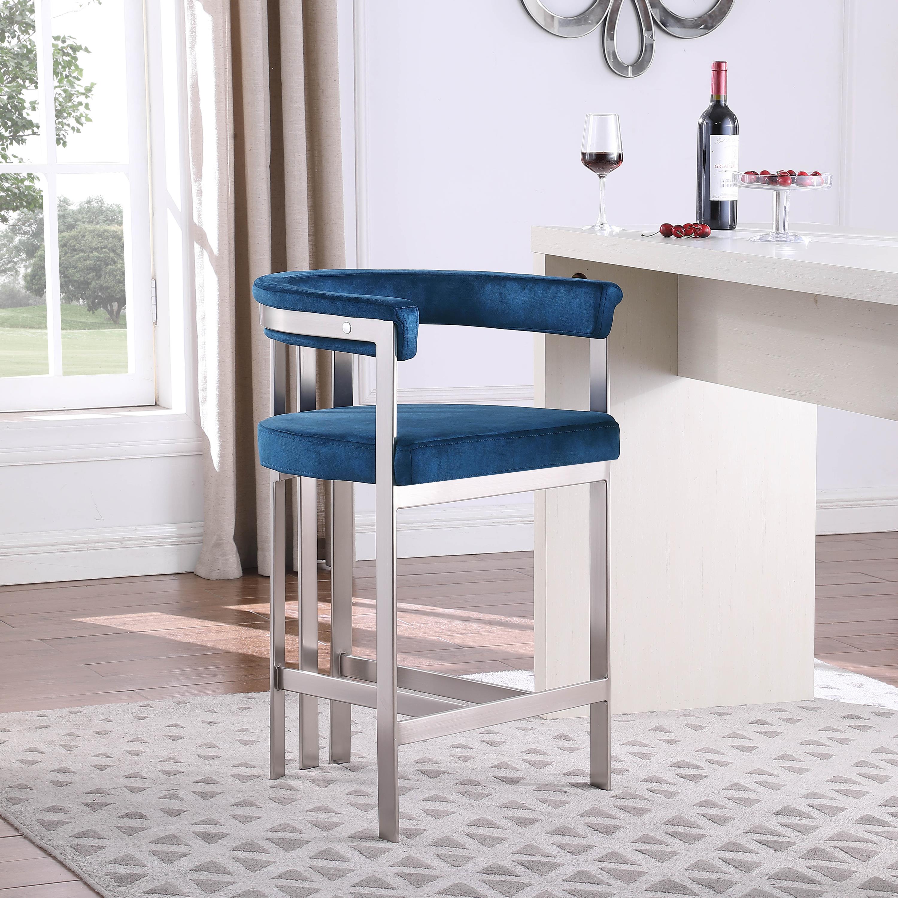 Meridian Marcello Navy Velvet Counter Stool