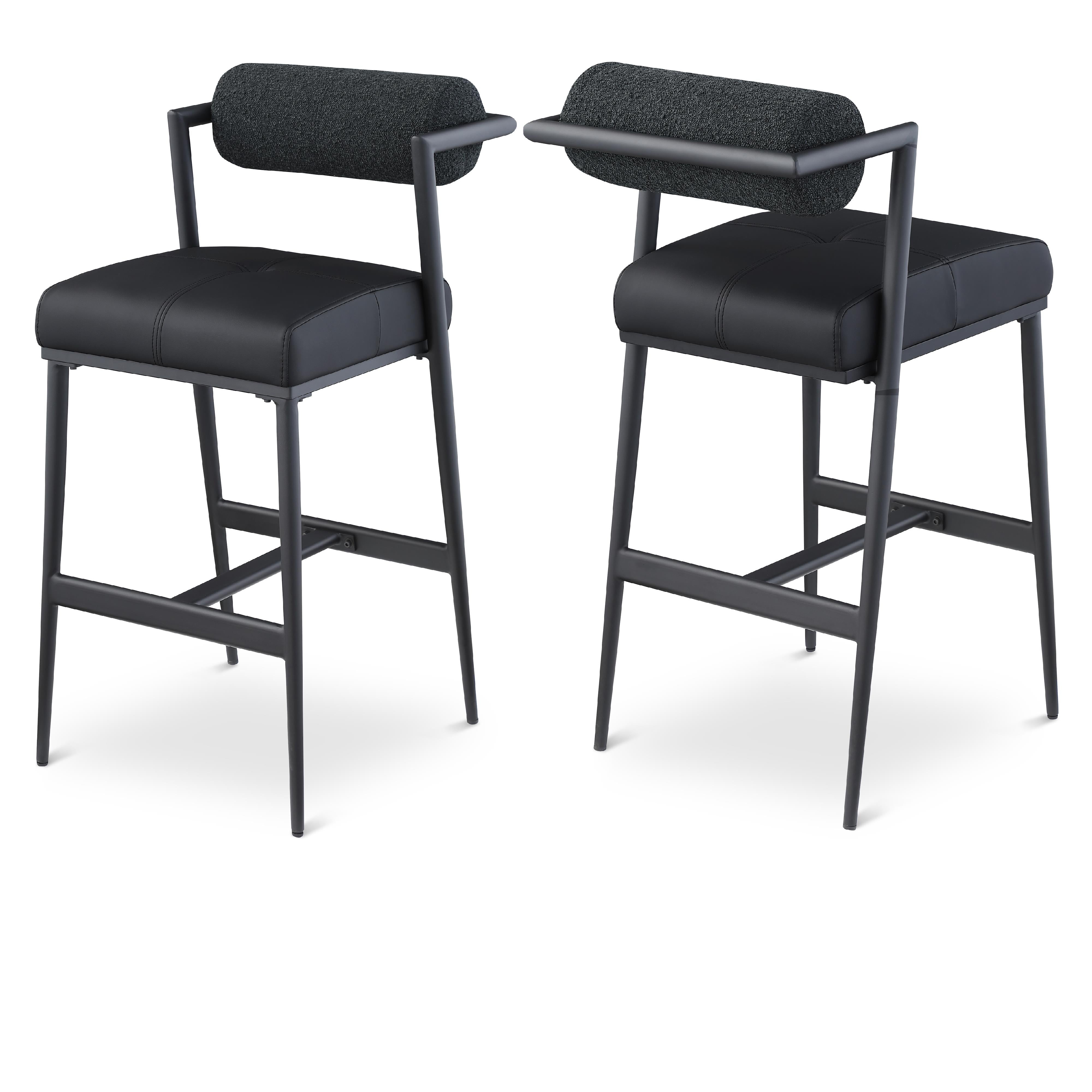Meridian Stryker Black Boucle Fabric and Vegan Leather Stool