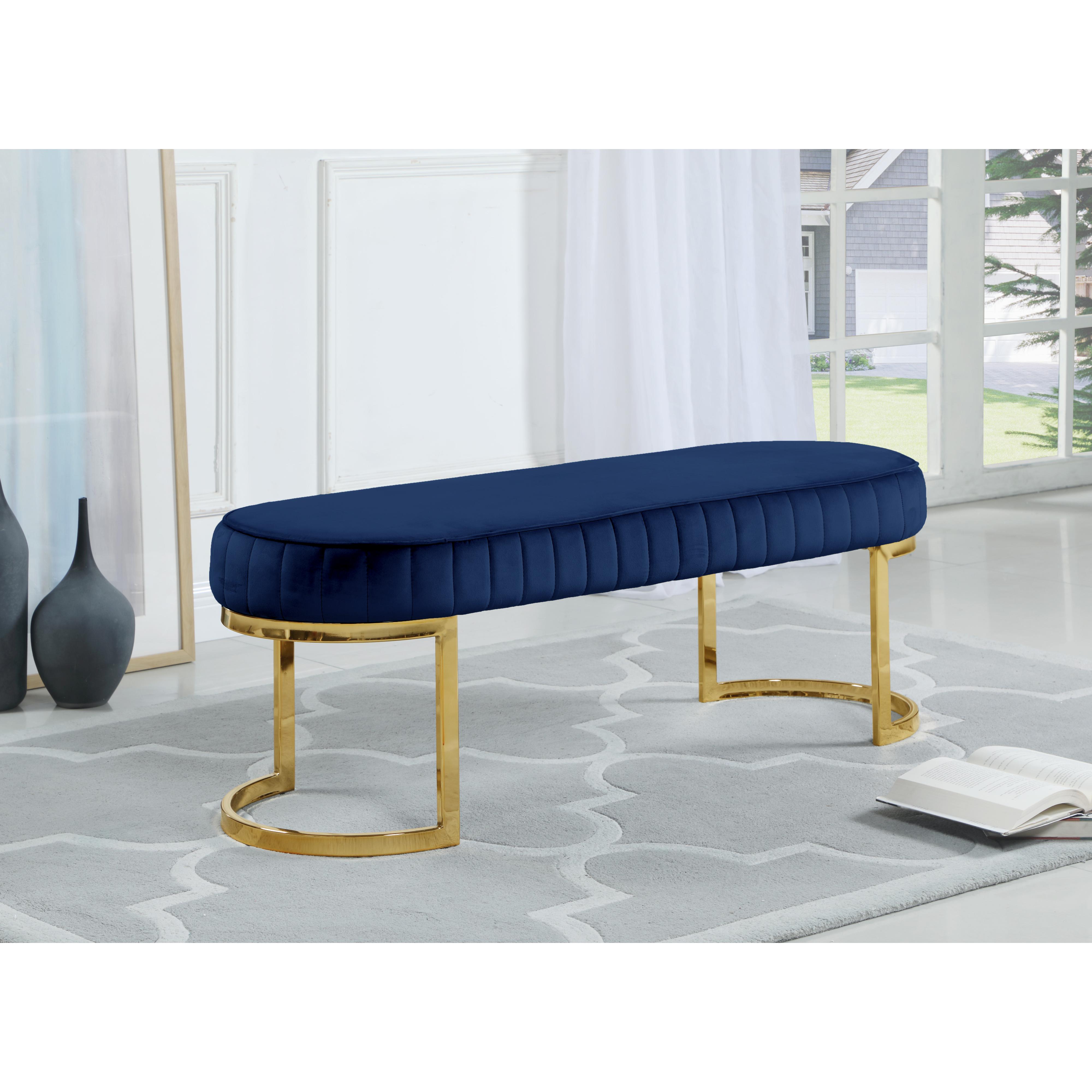 Meridian Casey Sky Blue Velvet Ottoman/Bench