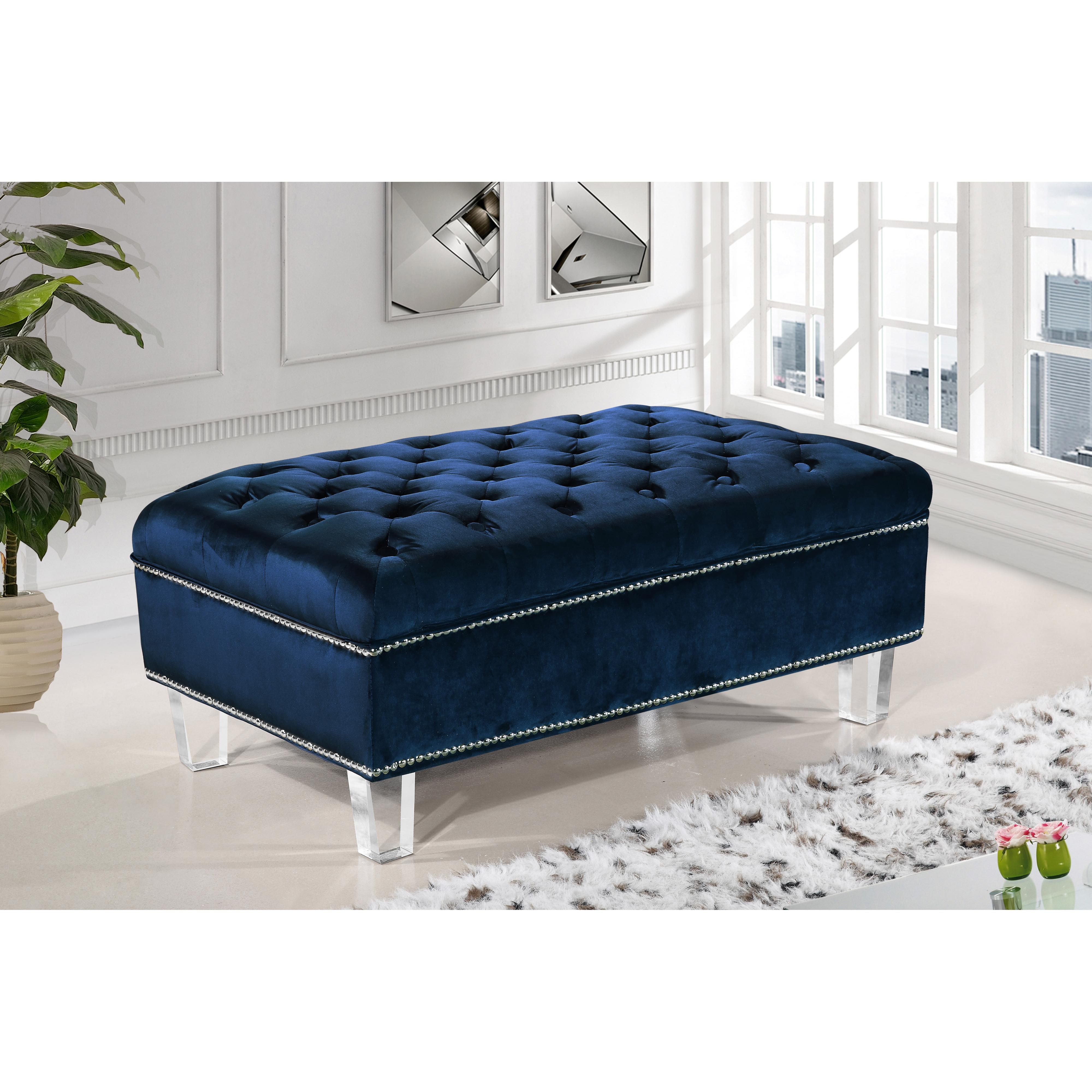 Meridian Ariel Navy Velvet Ottoman/Bench