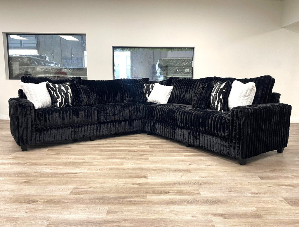 With its generous seating capacity and modern aesthetic, the 9600 Black Sectional is ideal for family gatherings or cozy nights in. Transform your home with this luxurious sectional that beautifully balances comfort and contemporary elegance.