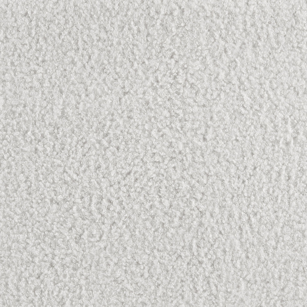 Fresh white boucle upholstery is textured and inviting, offering dimension in your bedroom