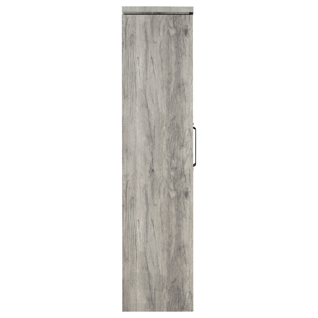 This tall curio cabinet makes for an impressive addition to a well-appointed home. The charming cabinet has classic sense of style and design. Two glass doors with contrasting dark hardware give the curio a distinguished appearance. The doors provide easy access to eight compartmentalized shelves offering abundant storage space. Finished in grey driftwood for a stylish look appropriate for any living room or den.