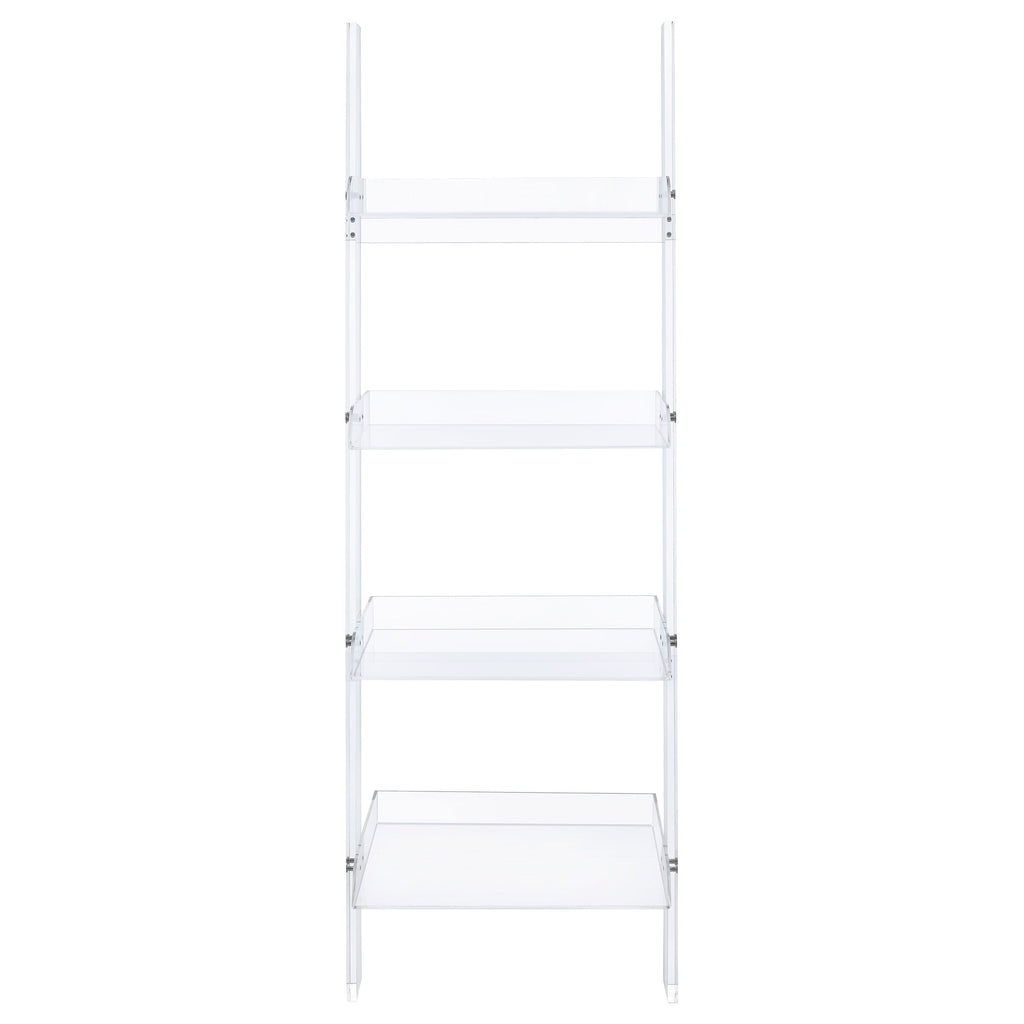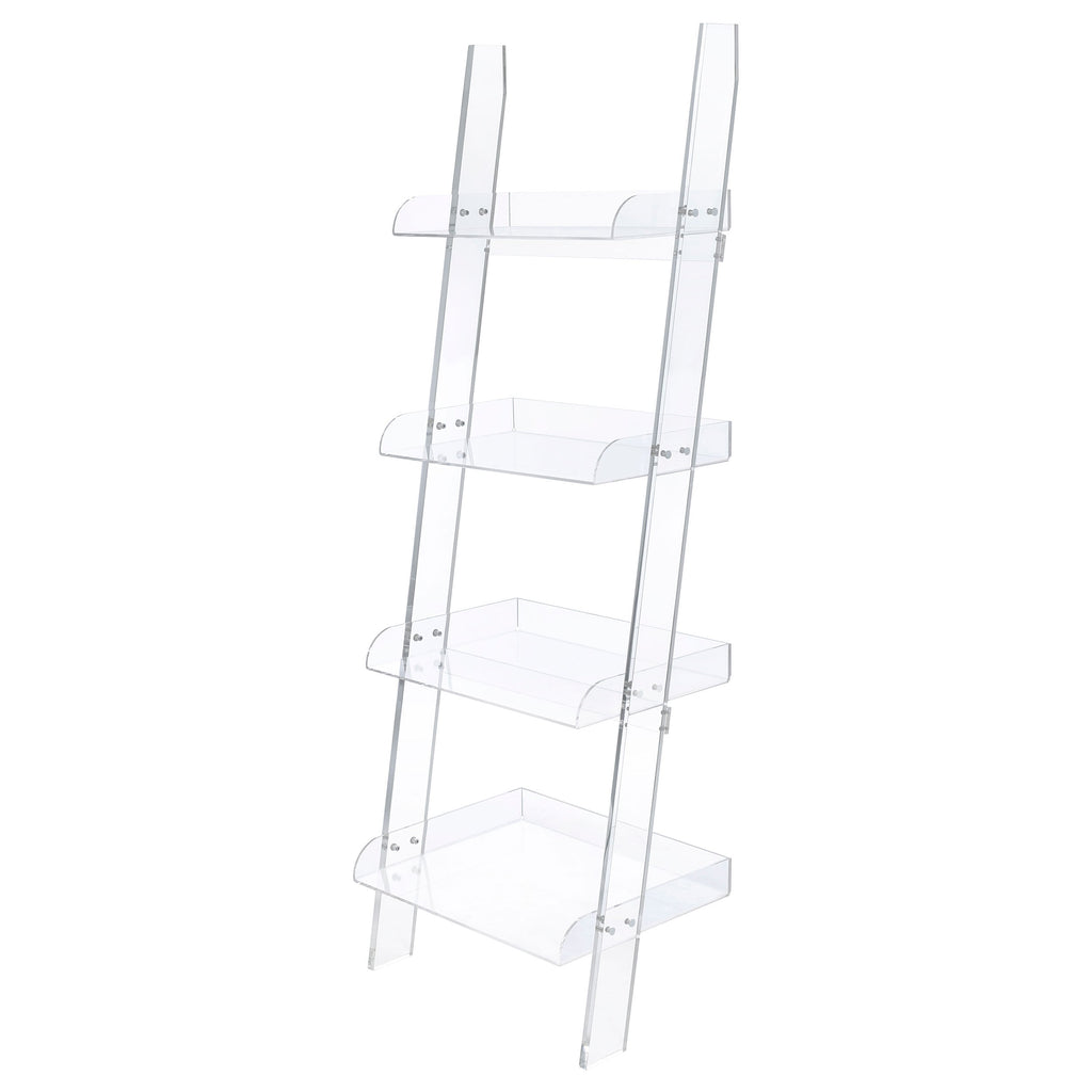 Bring a chic, airy touch to your living room with this clear acrylic ladder shelf that merges form and function. Its four open tiers offer ample space for showcasing books, décor, or multimedia items. Lightweight yet sturdy, this modern bookcase allows natural light to flow through, maintaining a spacious feel. Use it as a sleek display shelf or multimedia shelf, and enjoy its crisp look that blends effortlessly with contemporary or eclectic styles.