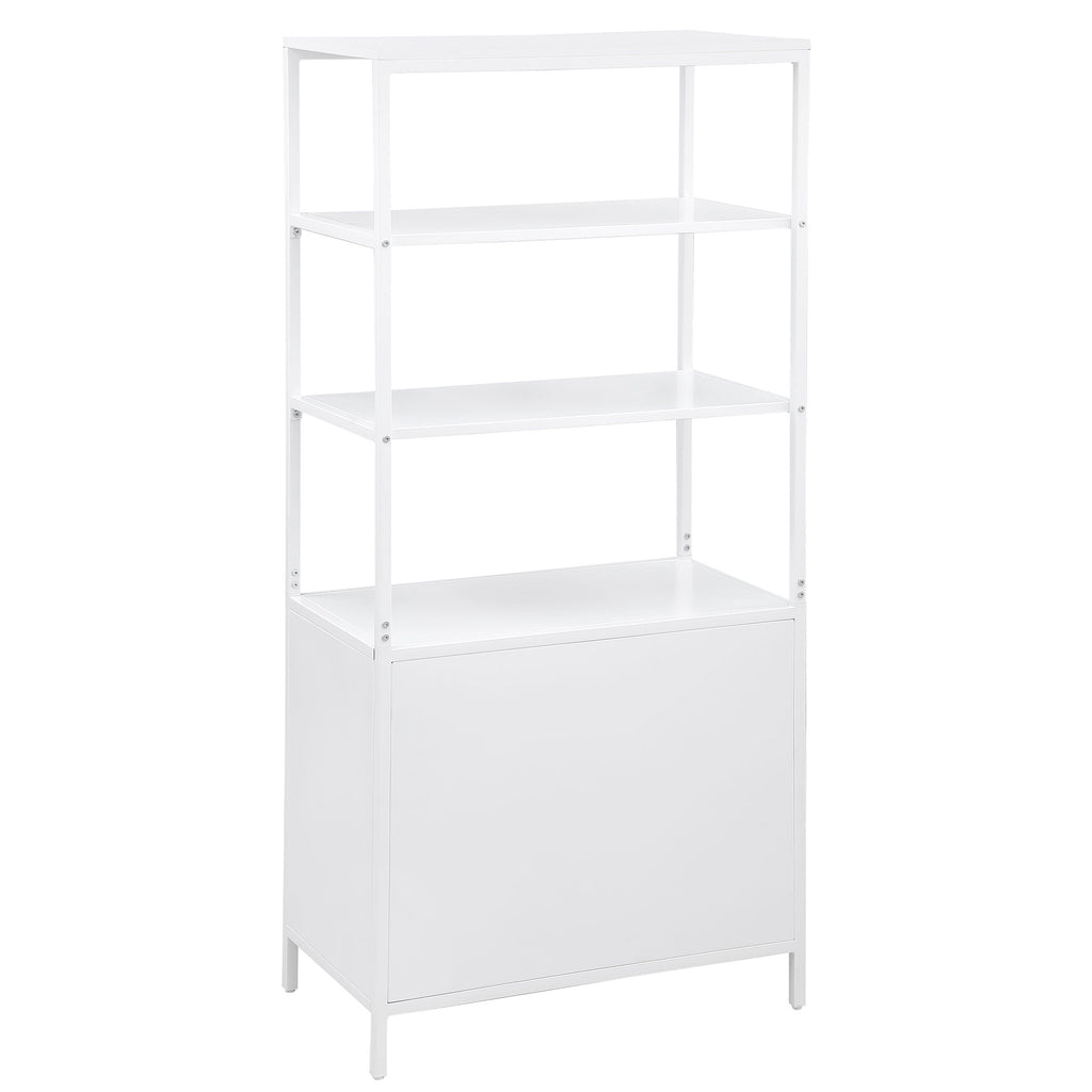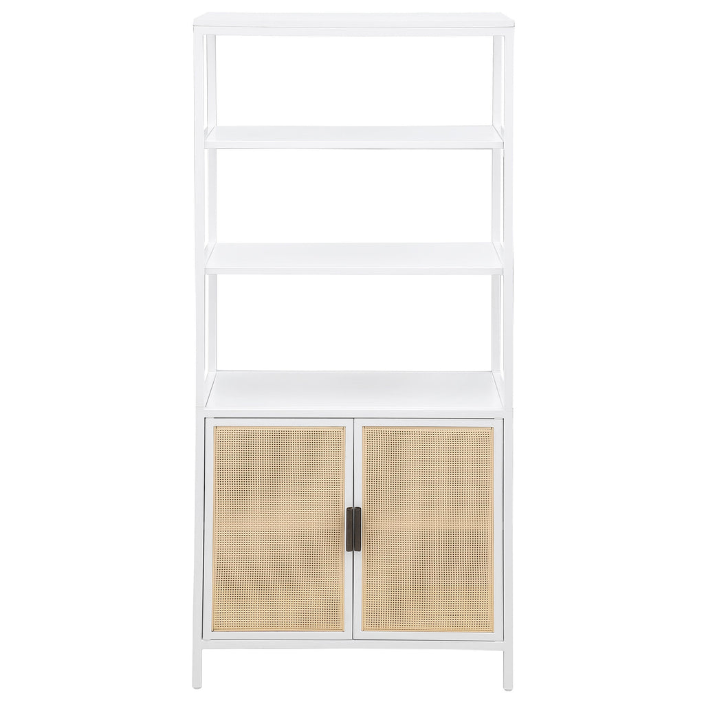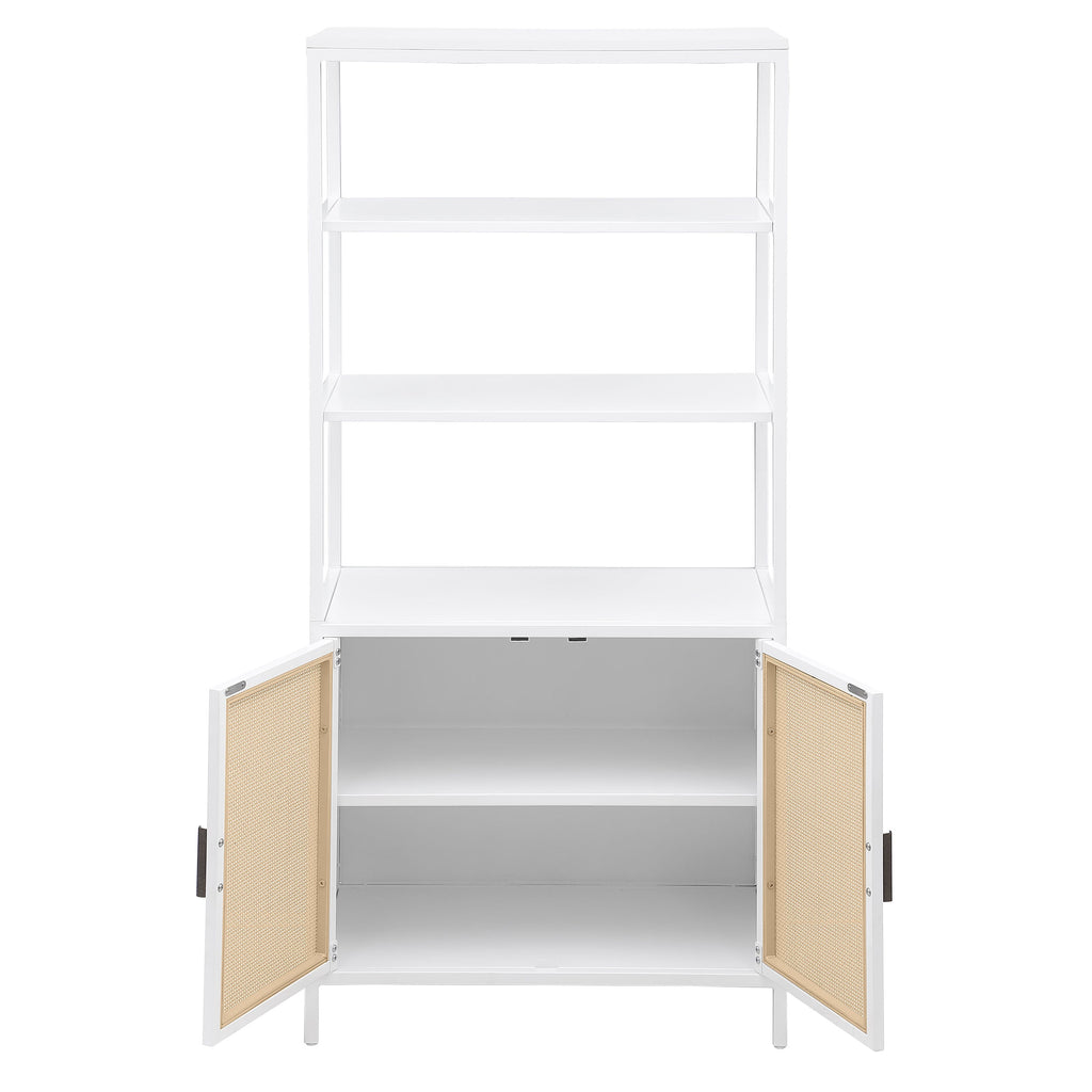 Elevate your storage solutions with this stylish two-door tall accent cabinet, expertly crafted from durable metal for long-lasting support. The sleek powder-coated finish adds a modern touch while providing excellent resistance to scratches and wear. The polyethylene (PE) rattan door fronts bring a hint of coastal charm, adding natural texture to your decor. With three tiers of open shelving, this cabinet offers ample space for displaying decor, books, or essentials, while the enclosed cabinet with a fixed shelf provides additional storage for items you want neatly tucked away. This versatile piece seamlessly combines function with style.