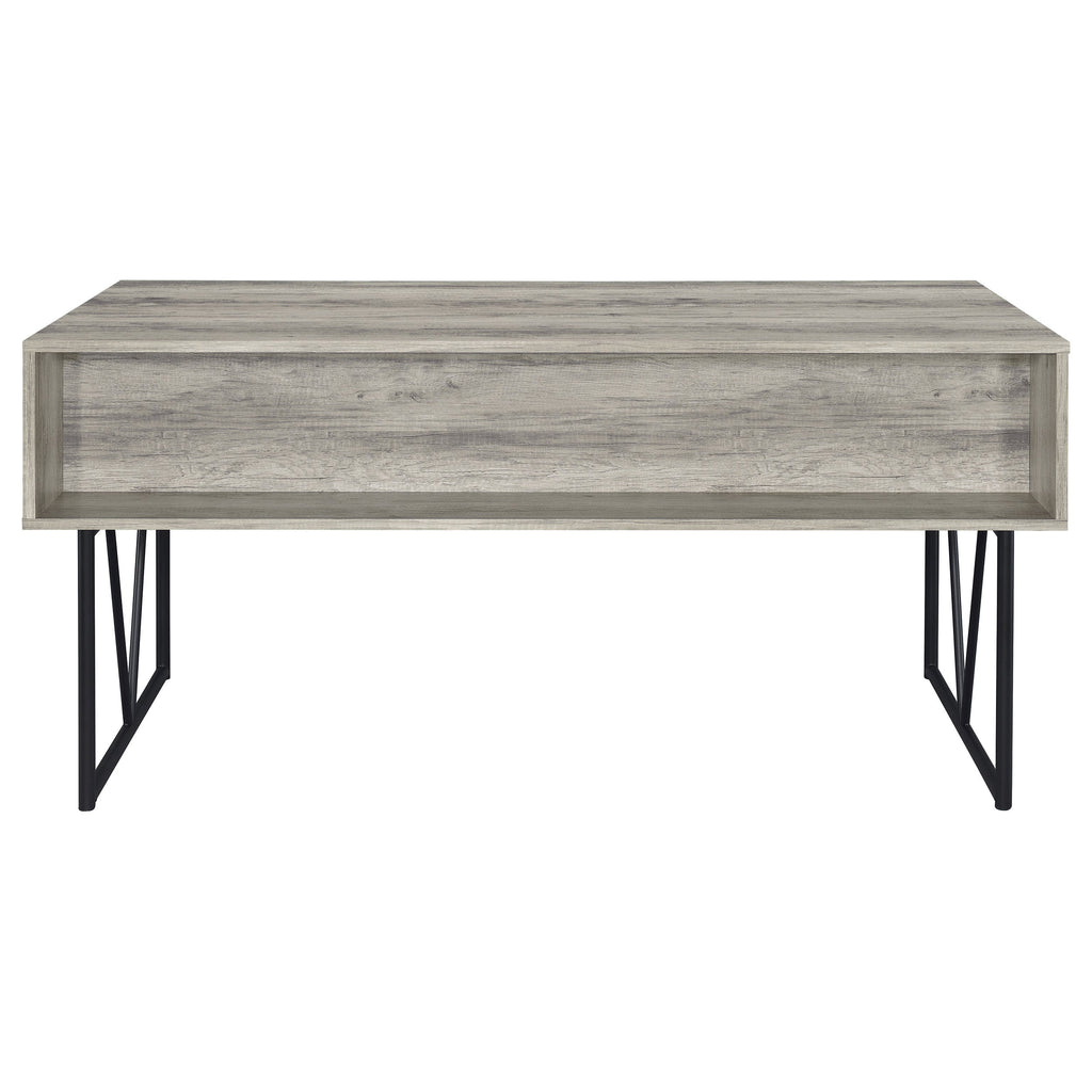 This handsome writing desk combines minimalist design with industrial function. It's fashioned with four drawers complete with full extension glides for convenient storage capacity. The table top has wood grain accents that evoke character and warmth as well as space for all necessary work materials. The metal base and legs have a black finish that's a magnificent contrast to the grey driftwood design. Up your productivity with this desk that's ideal for any office space.