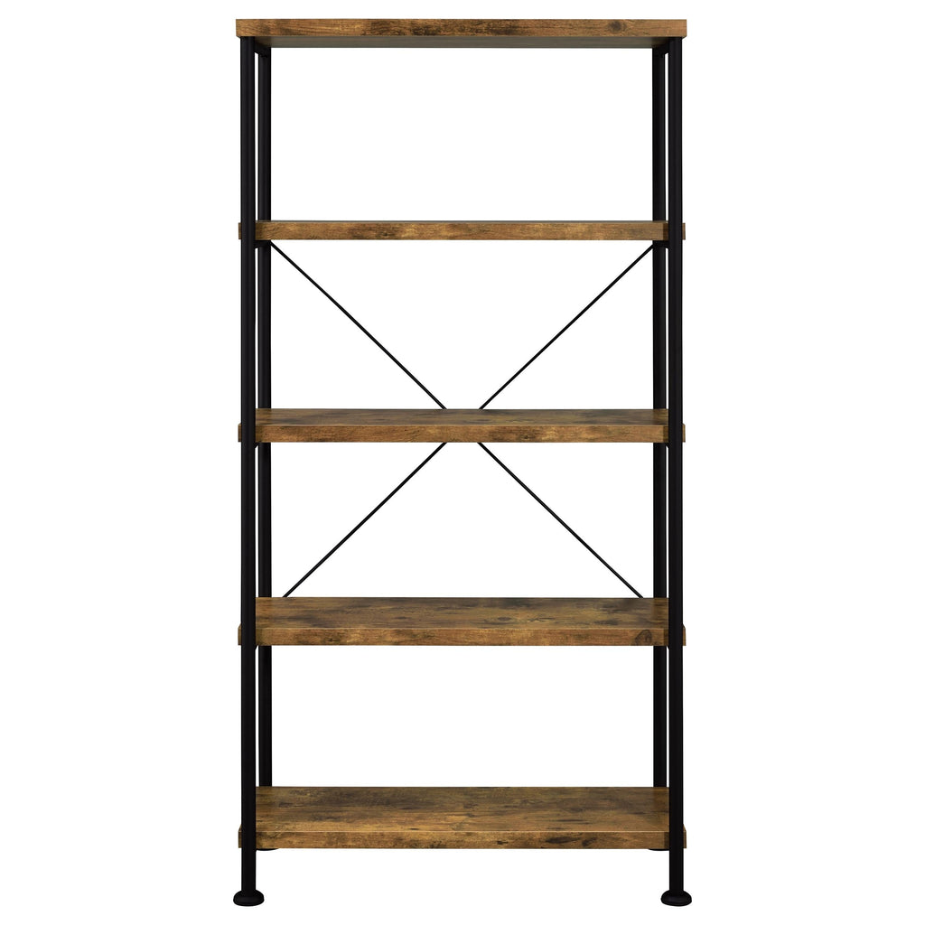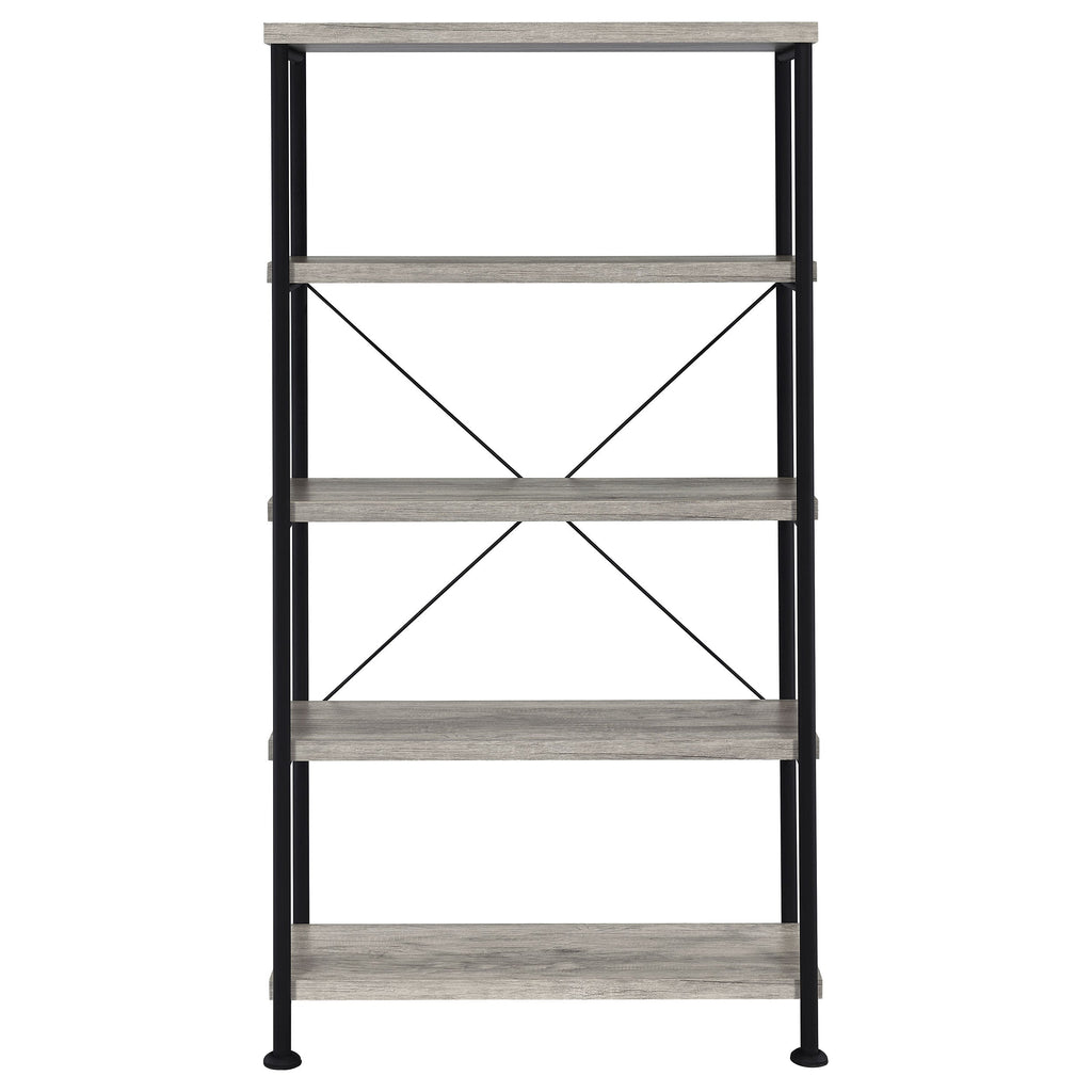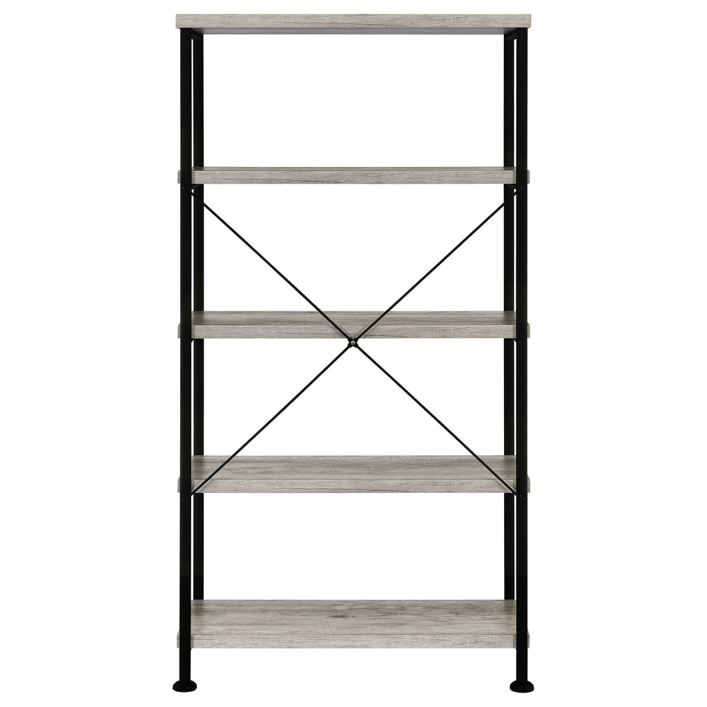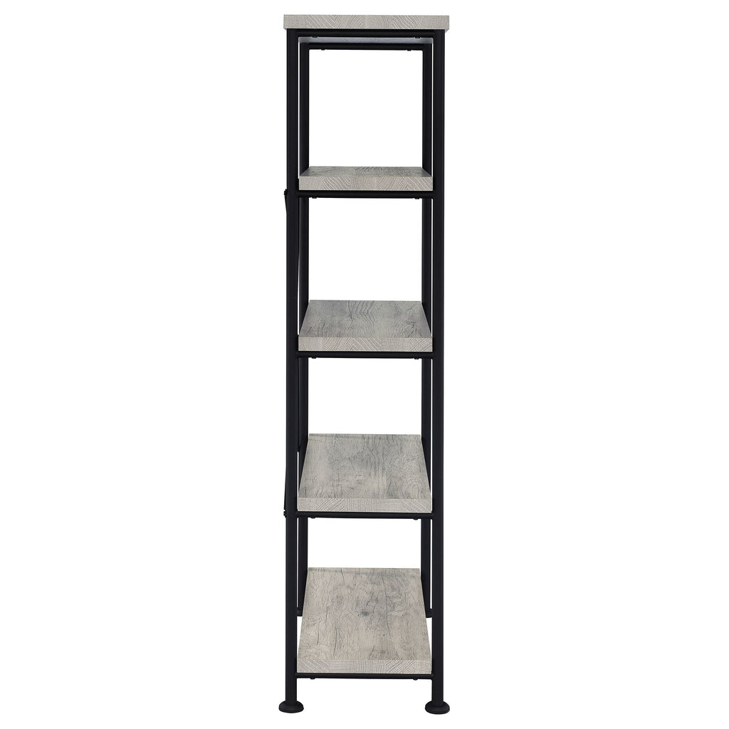 Stay true to modern ambiance. With a lovely palette and sophisticated design, this bookcase becomes an important part of a home office or living space. Place books and decor on four shelves finished in grey driftwood. A slight industrial flavor brings intriguing character and a softer aesthetic that blends in more traditional settings. This bookcase is a perfect choice for energizing any space.