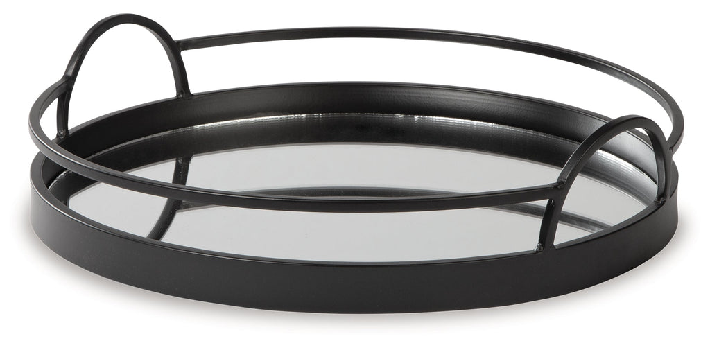 Crafted from metal, this mirrored glass tray features raised railings along the circumference to ensure the safety of your favorite keepsakes. Versatile and visually elevating, this is a great choice for decor spaces with a contemporary feel and design.