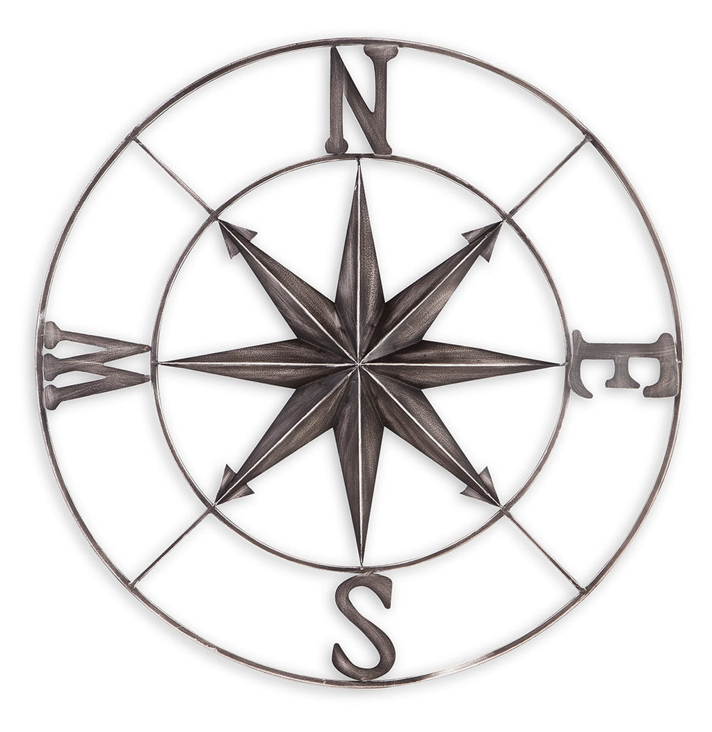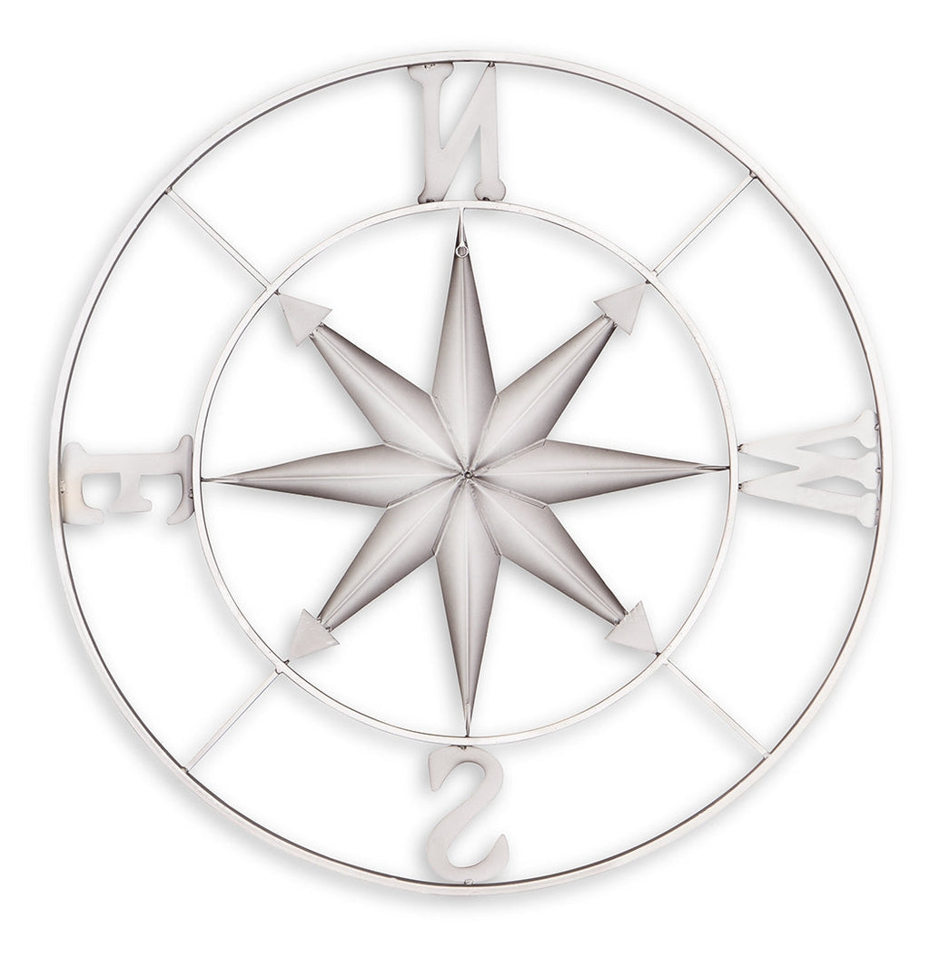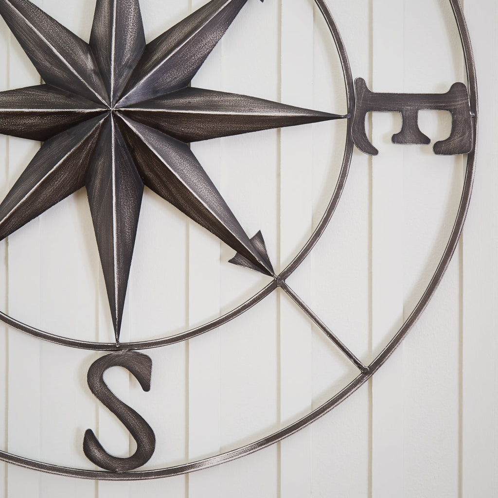 Infuse your space with the farmhouse style of this metal compass wall art. With antiqued gray directional markers and arrow points in a round frame, it adds a casual dimension to your space. Place it in the center of a wall, over a mantel or above a sofa or bed to add a nautical feel anywhere it's displayed.