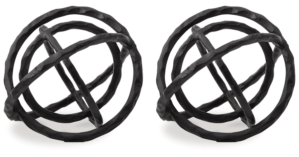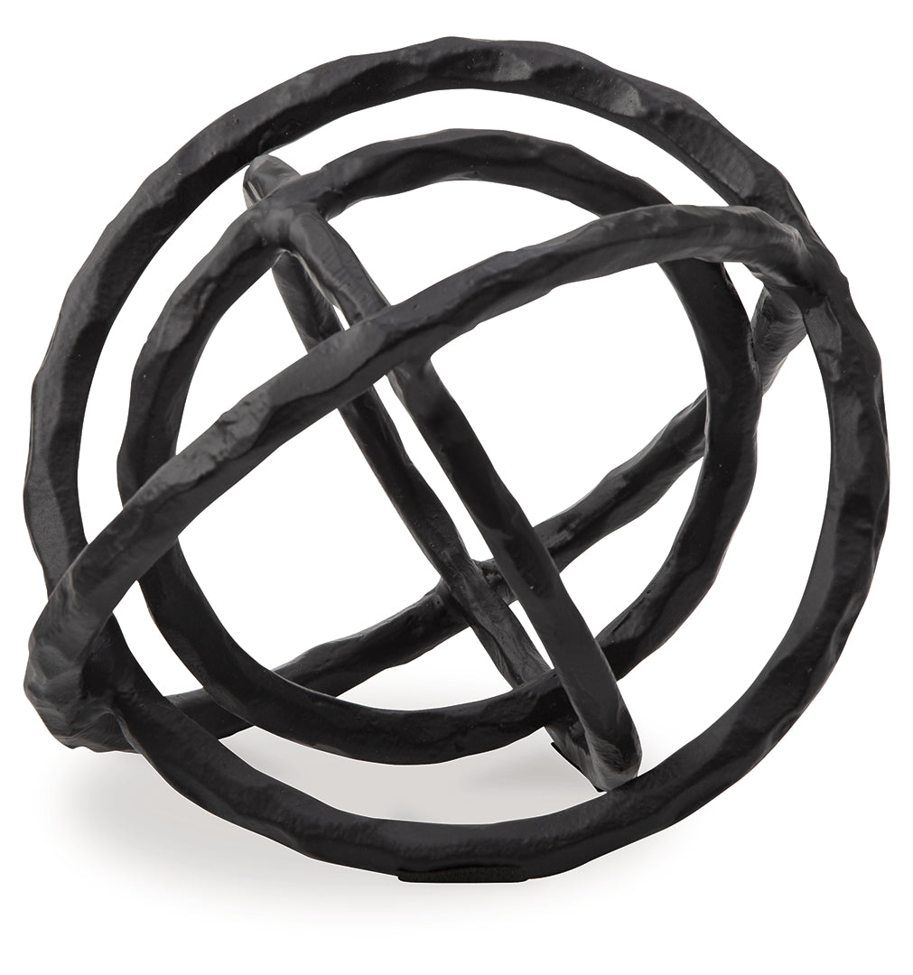 This sculpture brings contemporary art full circle. Interlocking metal rings in a black finish add an art gallery touch for a console table, bookshelf or mantel.