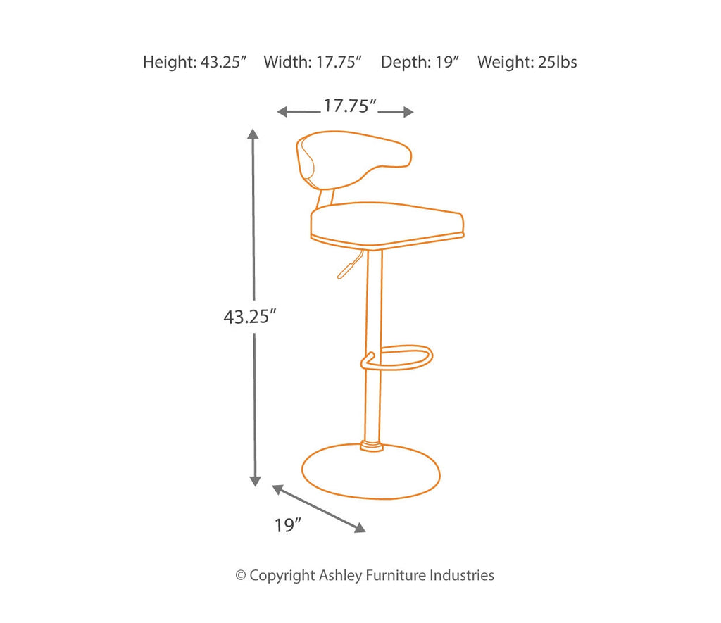 - Adjustable chair height (max) : 43.25"
