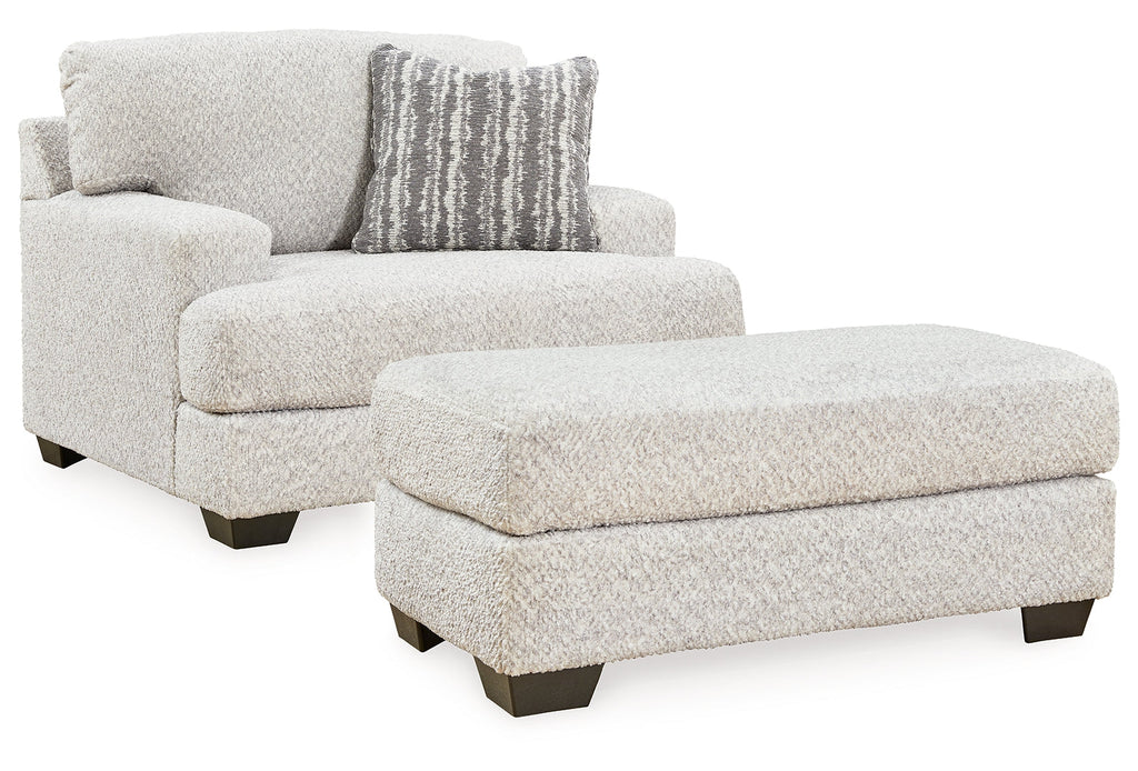 This seating package speaks to those drawn to fresh, contemporary style with richly neutral appeal. Wrapped in a wonderfully plush fabric loaded with multi-tonal interest, the on-trend set has a warm, welcoming charm. Kick back, relax and settle in for comfort with this cool addition for modern spaces.