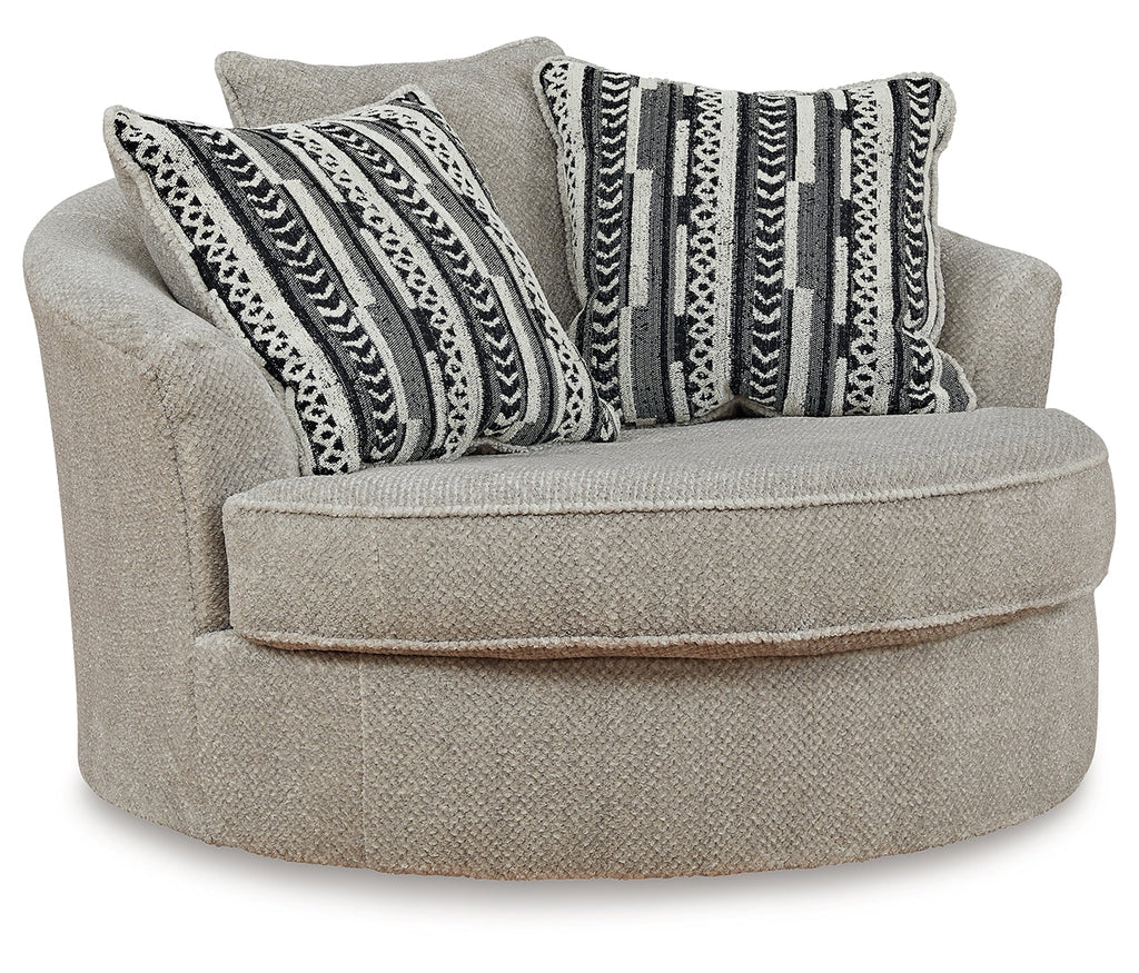 This seating package caters to your need for contemporary comfort. Decked out in feel-good fabric in a versatile hue, the family-friendly set is ideal for hosts with the most. Quality time has never been so cozy.