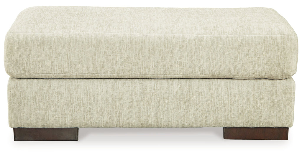 Easy on the eyes and irresistibly comfortable, this ottoman is covered in luxurious chenille microfiber in a light, neutral hue. The versatile and visually appealing piece cradles your tired feet as you sit back and relax at the end of a long day. Whether it’s paired with a sectional or on its own, this ottoman feels right at home in your modern decor.
