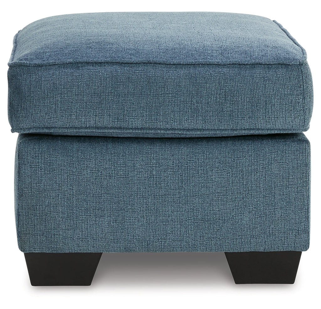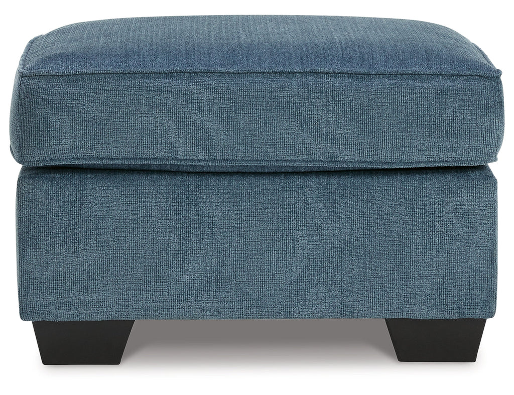 Need a simple style refresh? Liven up your living room essentials with this ottoman. A chunky silhouette holds inviting cushioning perfect for propping up feet or a decorative tray. Crosshatched upholstery gives the otherwise casual design a delightful visual texture that's ideal for settings from classic to contemporary.