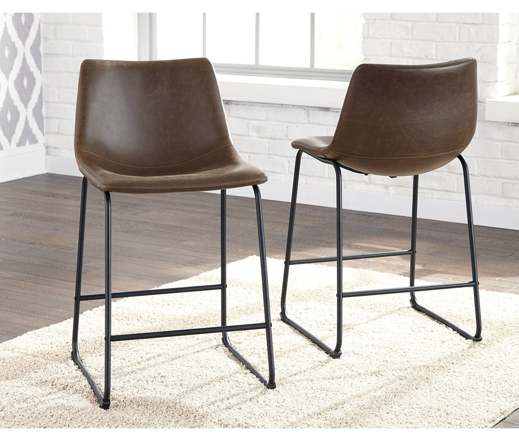 With its distinctive contoured bucket seat and tubular metal base, this upholstered bar stool serves up a fresh twist on mid-century inspired style. Practical faux leather has a charmingly vintage tone. What a timeless look for eat-in kitchens and casually cool dining rooms.