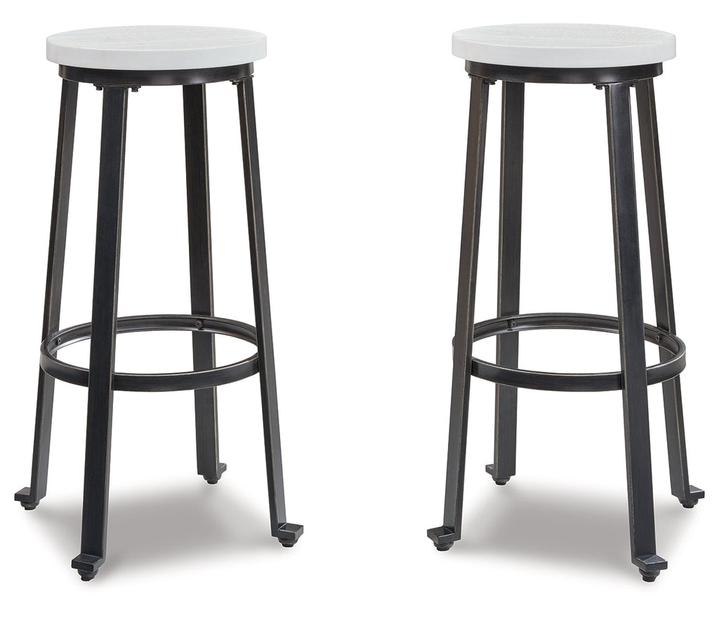 Talk about a cool bar stool. This tall bar stool's metal frame has a blackened pewter-tone finish and a distressed vintage white seat. The replicated plank design adds modern farmhouse feel that welcomes everyone home.
