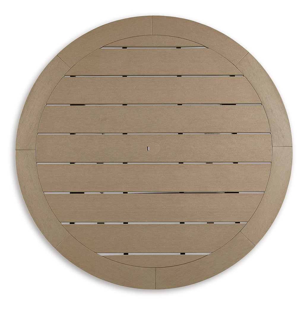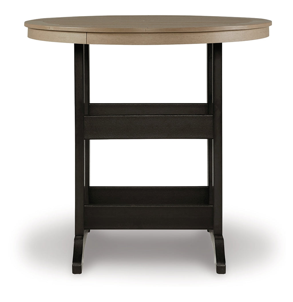 Raise the bar on outdoor living with this round bar table with umbrella hole. Crafted for style, comfort and durability, it caters with a standout two-tone look that pairs driftwood and black finishes for twice the interest. The round table design keeps everyone in the flow of conversation.