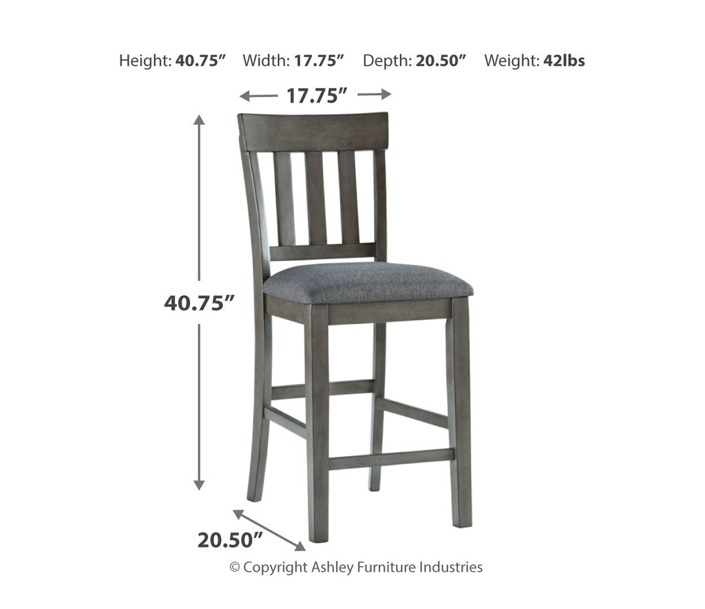Cool and on-trend. This upholstered barstool sports a two-tone gray look for a contemporary-yet-casual feel. The cushioned foam seat in a gray textural fabric pairs seamlessly with the antiqued gray finish, while the contoured comb-back design adds a dash of geometric flair. With this chic seat, it’s easy to dine in style.