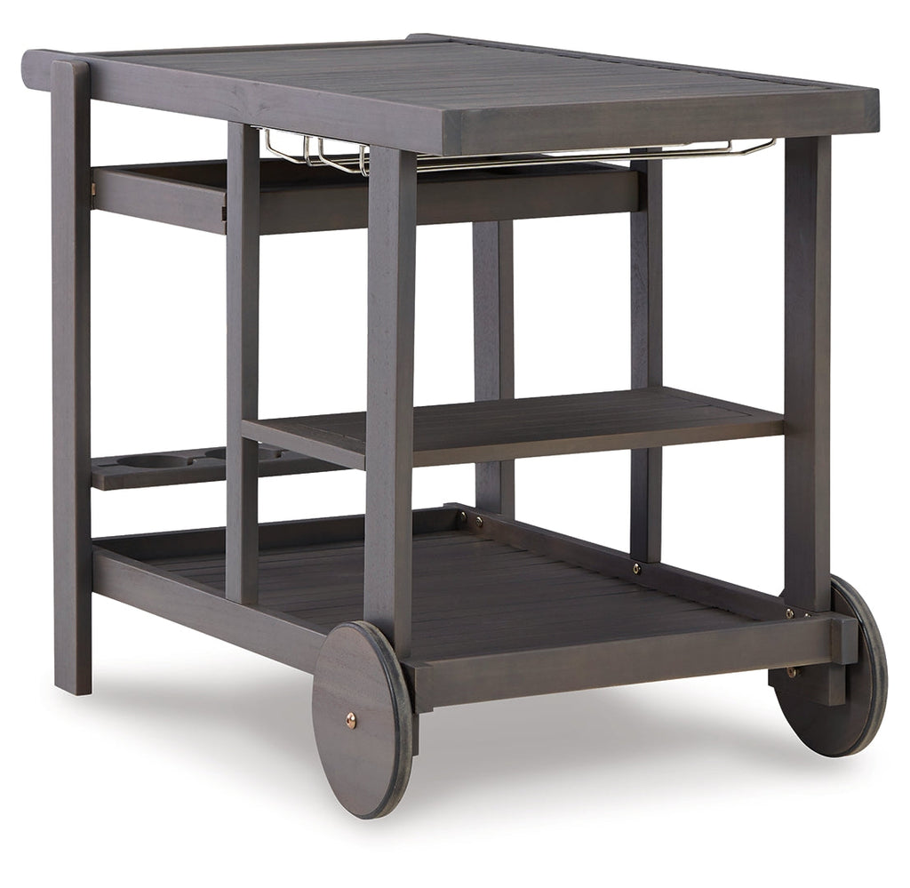 Whether decking out your deck or patio or making a splash by the pool, the Kailani bar cart serves it up right. Its trendy design is decidedly modern, with slat-style trays that are as pretty as they are practical. One tray even slides out to help serve your guests. Smooth-gliding wheels and a "party foul" protective bottle holder keep you on a roll.