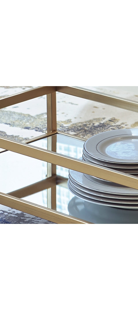 Whether used for serving up cocktails, showcasing succulents or creating dazzling displays, this bar cart does it with flair. The blend of clean lines, luminous goldtone finish and mirrored glass is a mastery in understated glam.