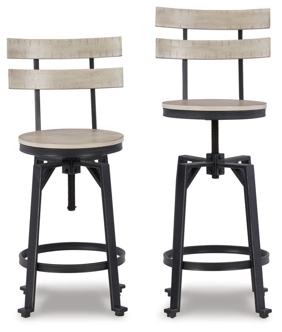 This bar stool features an acacia veneer seat and back in a whitewashed finish and a dark metal frame for a farmhouse fresh feel. The adjustable height swivel seat raises the bar on custom comfort and adds a rustic industrial element to your decor.