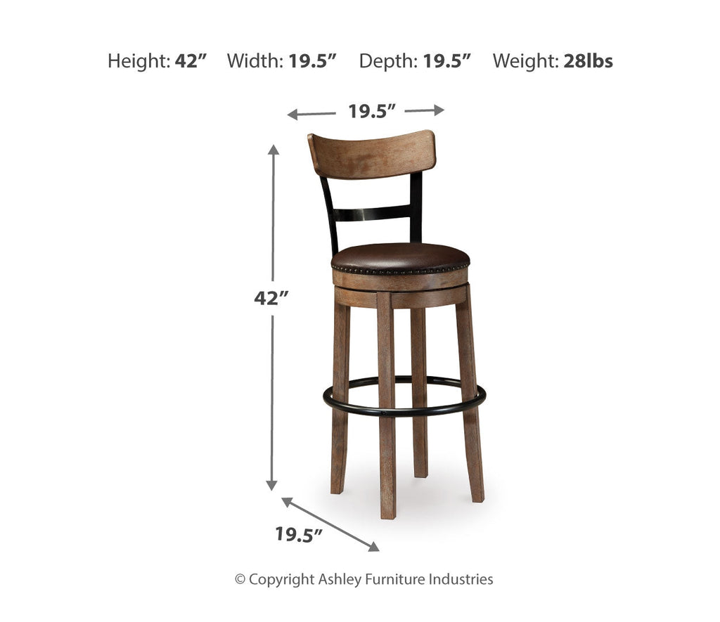 This pub height bar stool serves a sense of refinement without all the formality. A 360-degree spin element keeps you in the flow of conversation, while faux leather upholstered seating incorporates comfort and easy cleanup. The frame’s signature finish with a wire-brushed effect and gray undertones exudes an easy, relaxed sensibility.