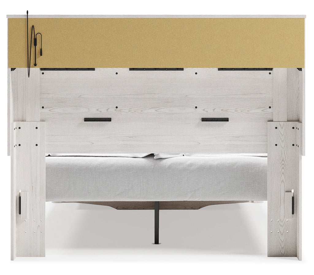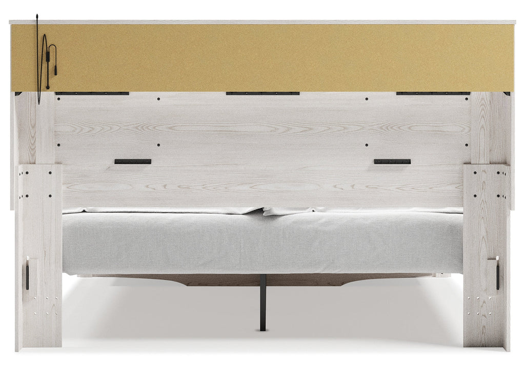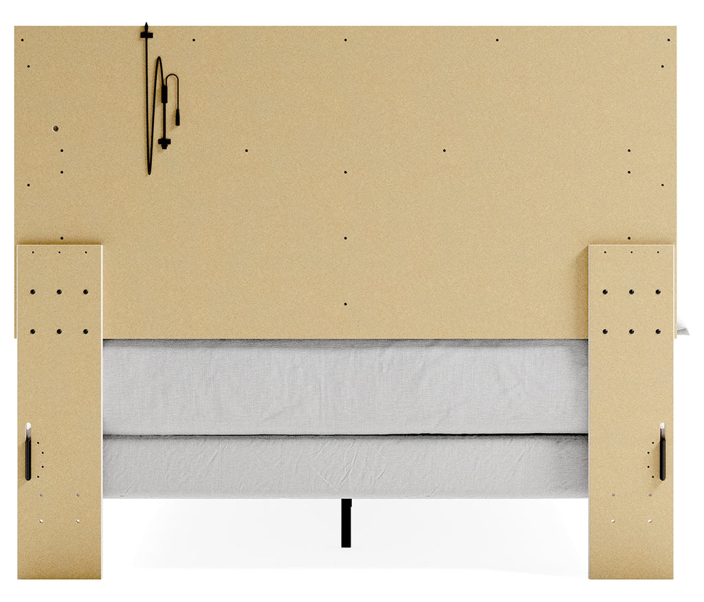 - King upholstered panel bookcase bed (headboard, footboard and rails)