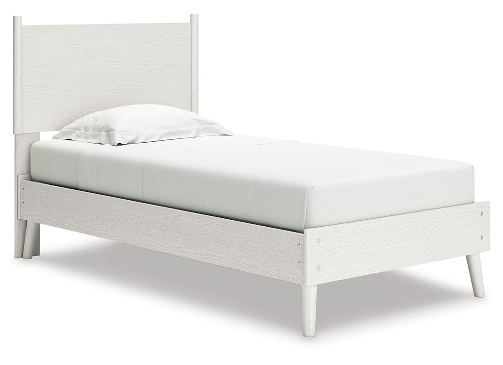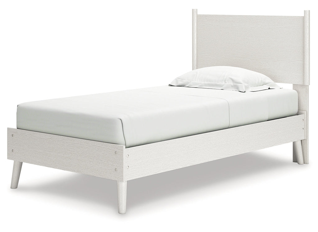 - Twin panel bed includes panel headboard and platform bed